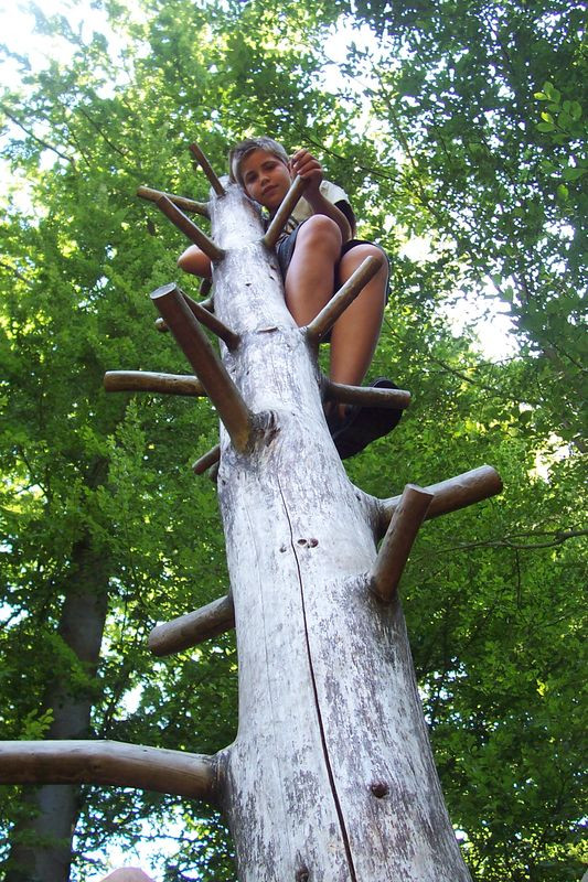 Eppinger Waldfühlpfad - Kletternder Junge auf Baumstamm | © Land der 1000 Hügel - Kraichgau-Stromberg