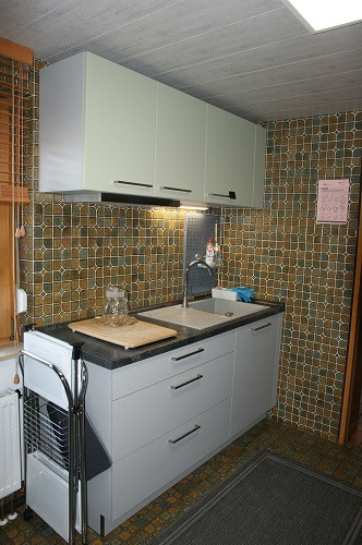 - Unsere Küche mit Herd, Backofen, Mikrowelle, Geschirrspüler, Kaffeemaschine, Wasserkocher, Toaster, Kühlschrank, Gefrierschrank