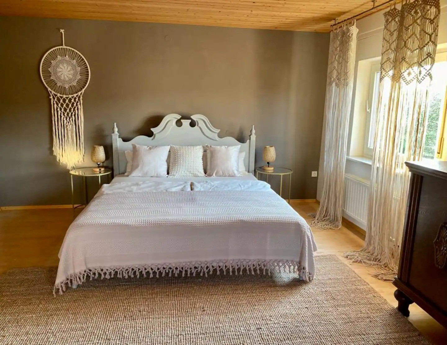 1. Schlafzimmer mit 180 x 200-Bett, Fernseher und Schaukelstuhl, 2. Schlafzimmer mit 180 x 200-Bett, Fernseher und kleinem Schreibtisch.