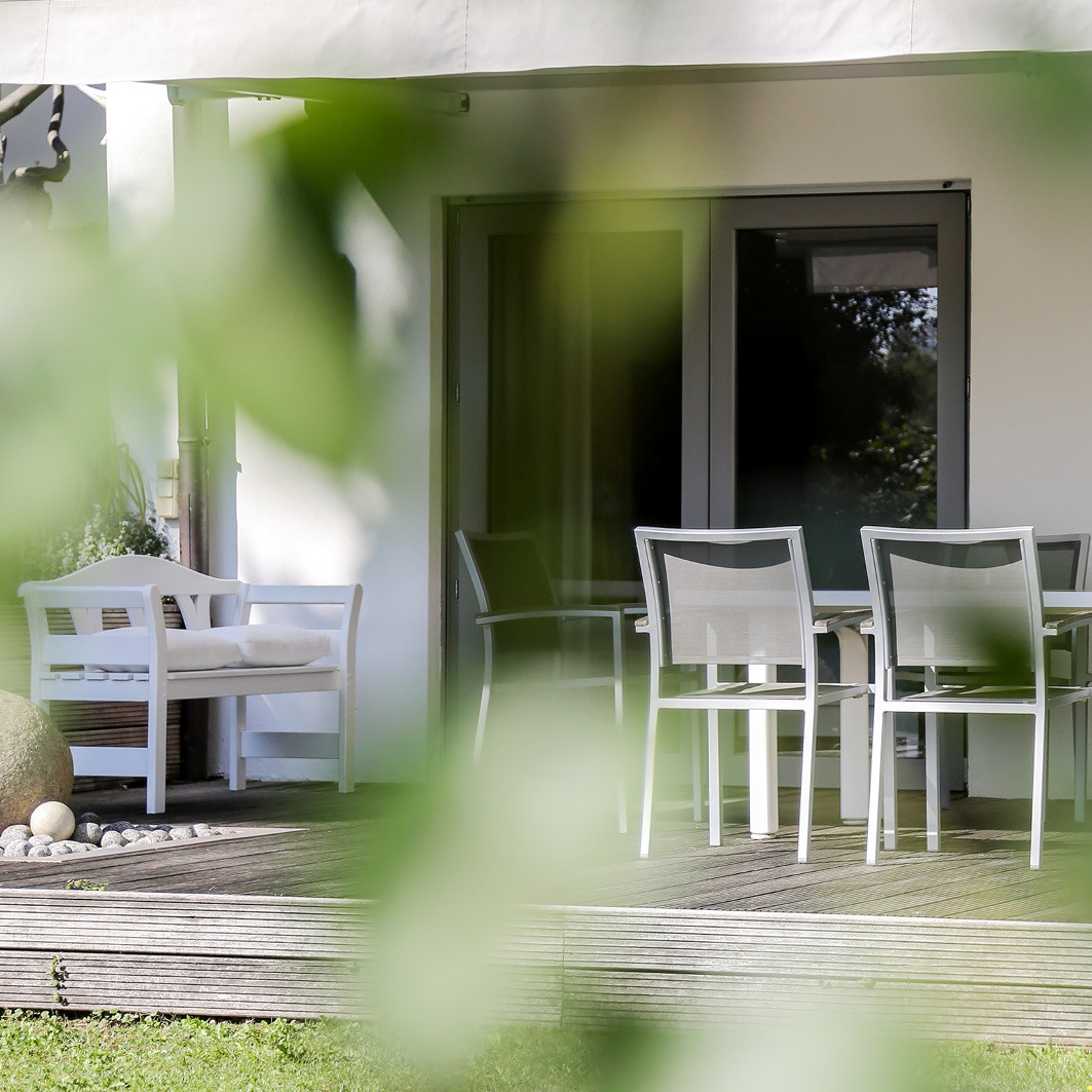 Das lichtdurchflutete Nichtraucher-Apartment mit offener Bauweise mit großer Holz-Terrasse (30qm) mit Wasserspiel liegt im Gartengeschoß des Einfamilienhauses der Besitzer und ist mit viel Liebe zum Detail als Zuhause mit allem Drum und Dran eingerichtet. Es ist über eine kleineTreppe mit separatem Eingang, auf Wunsch mit Treppenlift, leicht zugänglich. Ideal ist es für 2 Personen, kinderbett ist auf Wunsch möglich.