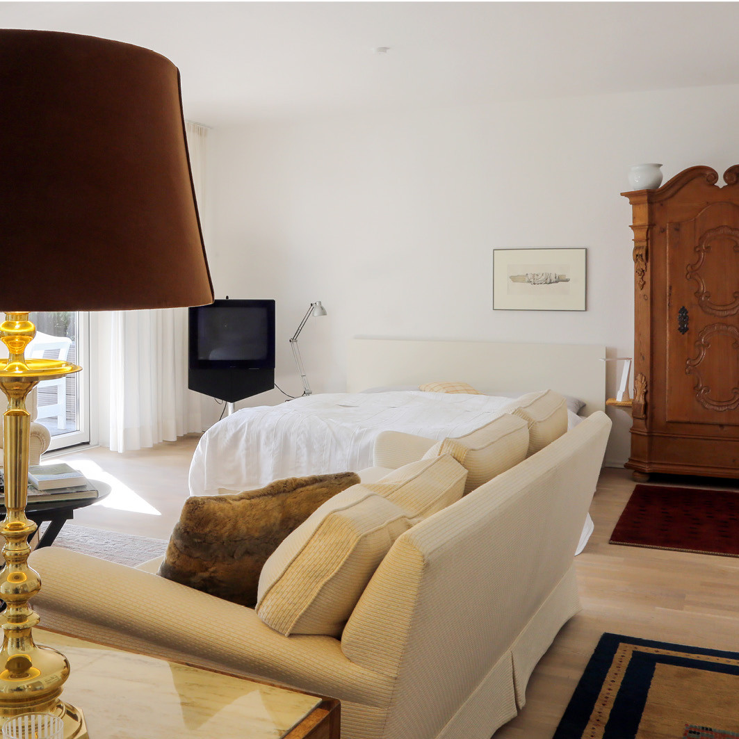 Das lichtdurchflutete Garten-Apartment mit großer Terasse ist mit viel Liebe zum Detail als Zuhause mit allem Drum und Dran eingerichtet. Spürbar ist die Zuneigung der Gastgeber zu Kunst und Literatur. Die Bilder aus eigener Sammlung sind allesamt Originale. Literatur steht auf Wunsch in großer Auswahl zur Verfügung. Haustiere auf Anfrage.