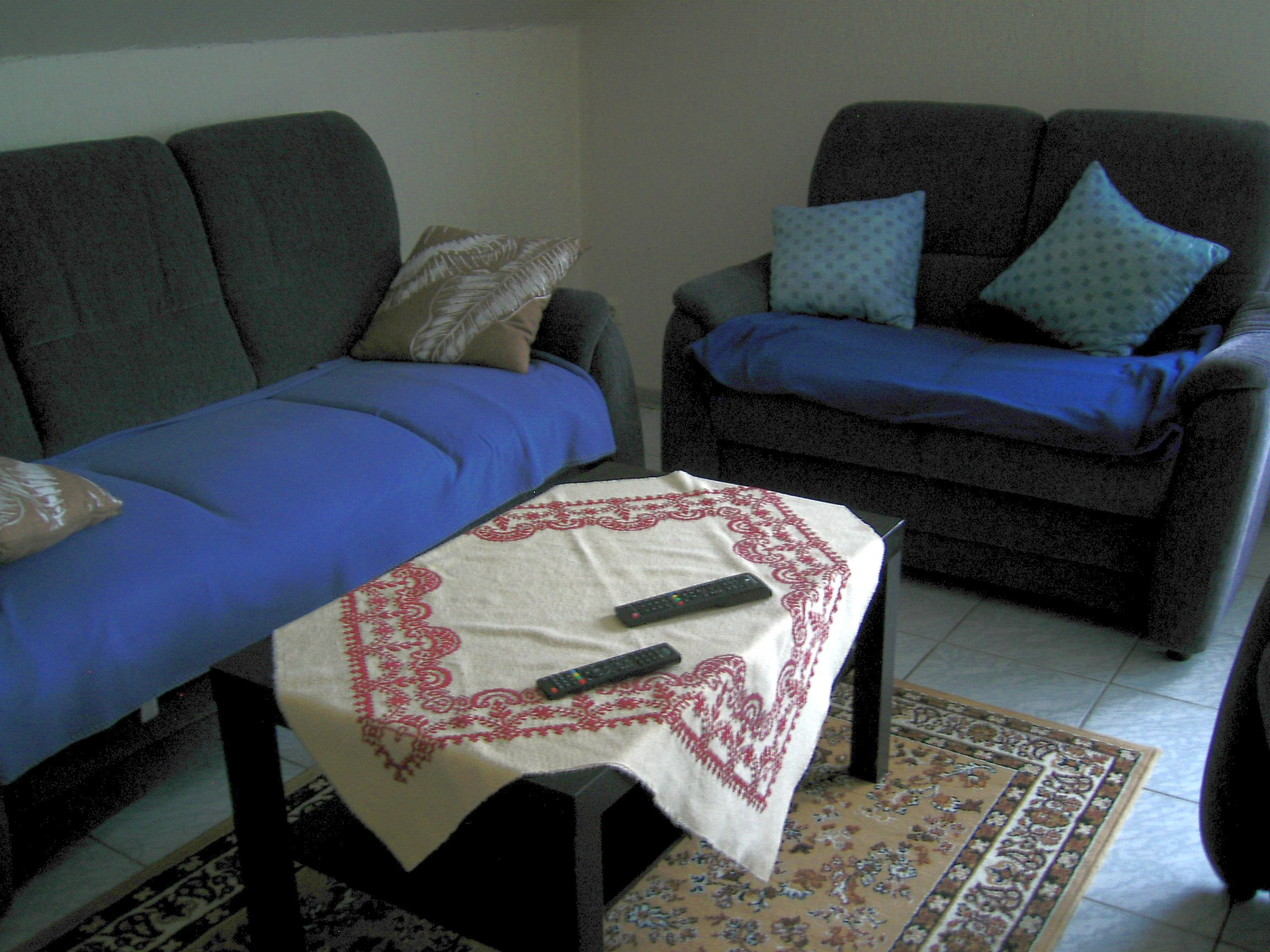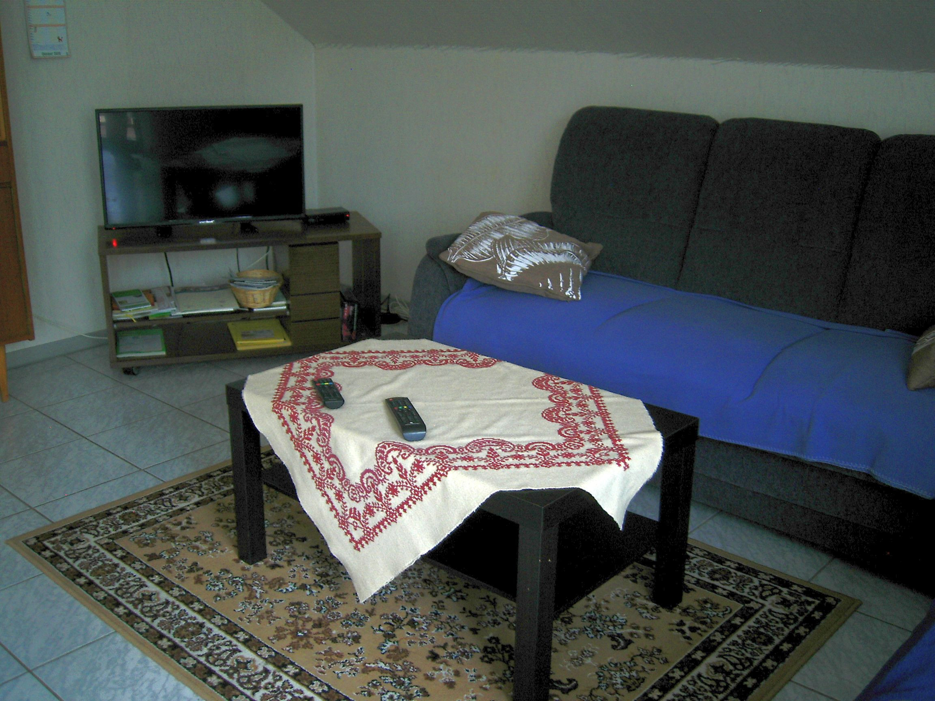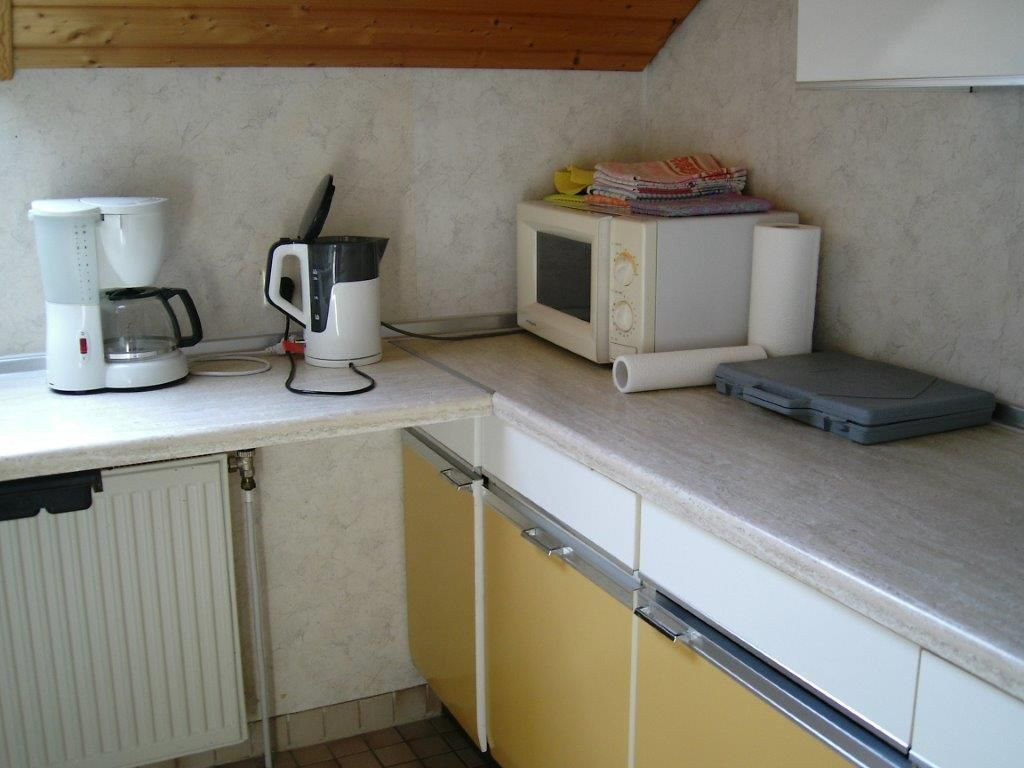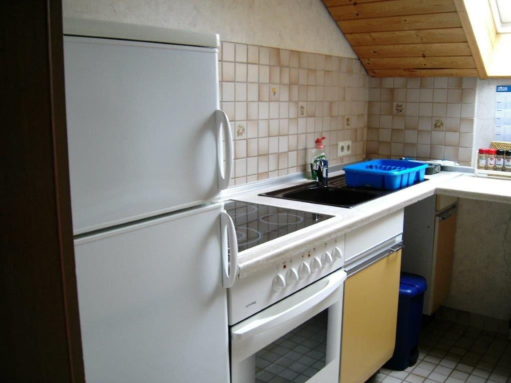 Die Dachgeschosswohnung ist 70 qm groß und verfügt über 2 Schlafzimmer mit je 2 Betten. Des Weiteren stehen den Gästen eine Küche, ein Wohn-/Esszimmer und Bad mit WC und Badewanne bereit. Die Küche ist mit einer Mikrowelle ausgestattet, einem Backofen und Kühlschrank eingerichtet.