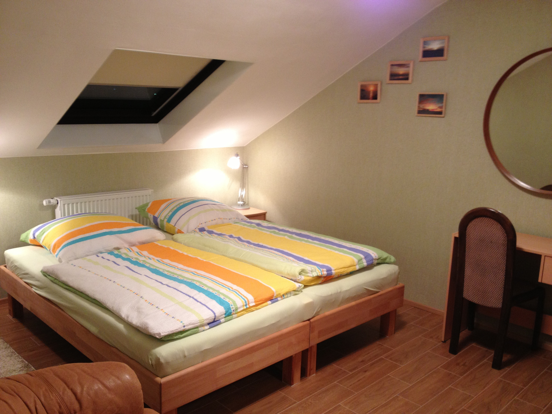 Komplett neu renovierte helle 2-Zimmer DG-Wohnung. Schlafzimmer, Wohnzimmer mit Schlafsofa, gut ausgestattete Küche und schönes Bad mit Dusche, Bahnhofsnähe, 1 km zur Stadtmitte.
