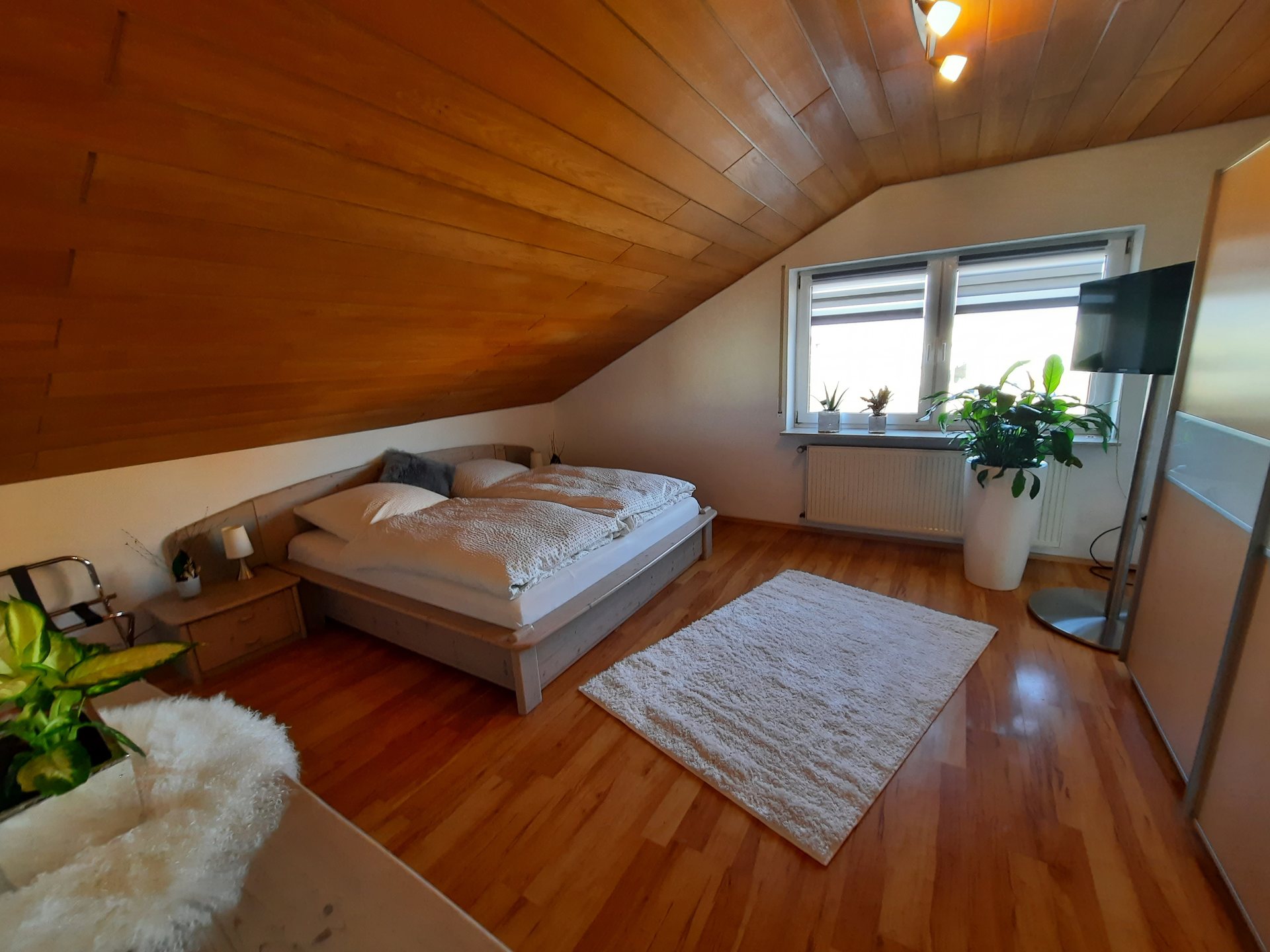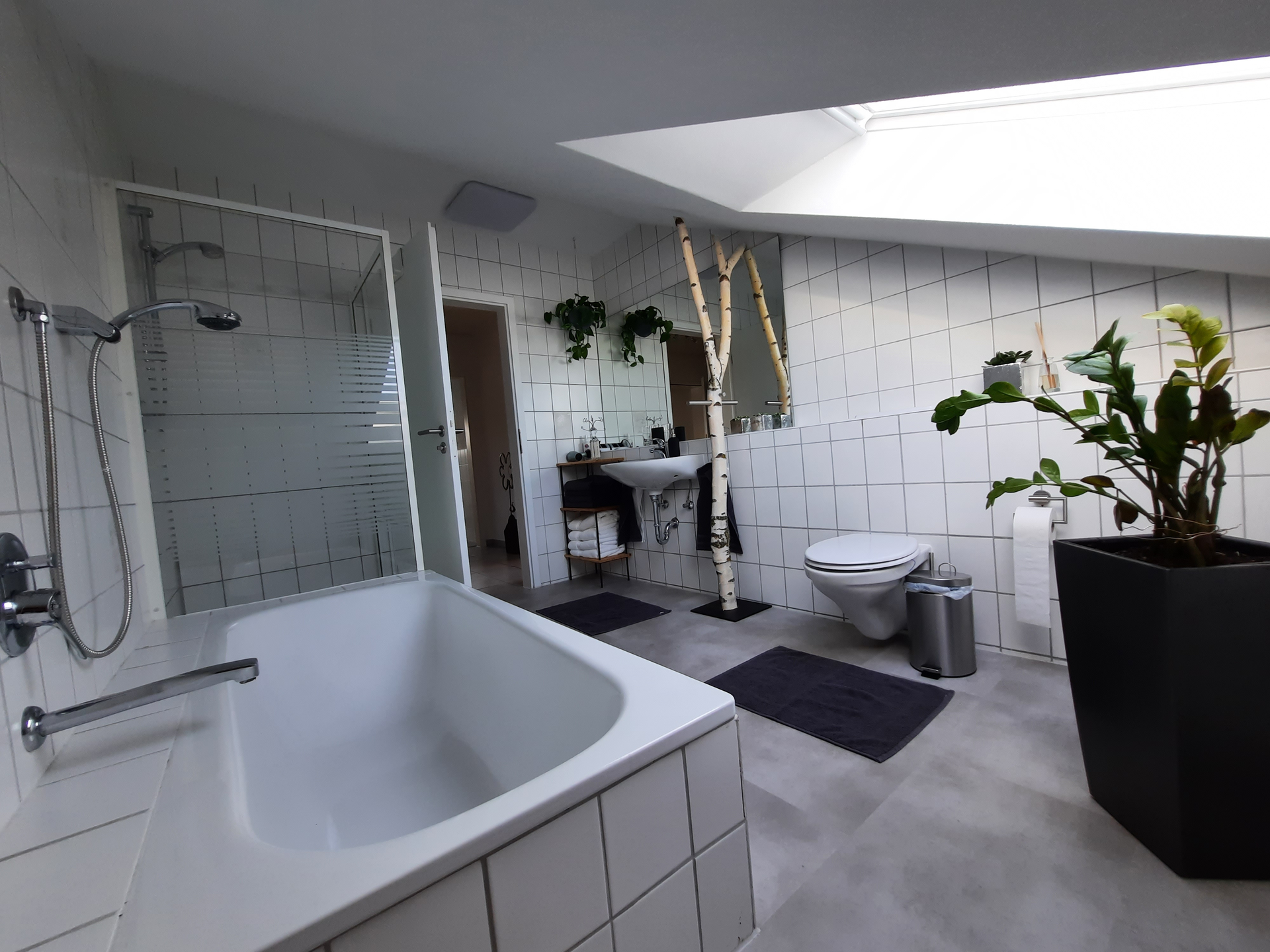 Unsere Ferienwohnung ist großzügig, hell und gemütlich gestaltet und befindet sich im 2. Stock unseres Privathauses in Eppingen - am Stadtrand, nahe an Wald, Wiesen, Feldern und Streuobstwiesen gelegen.