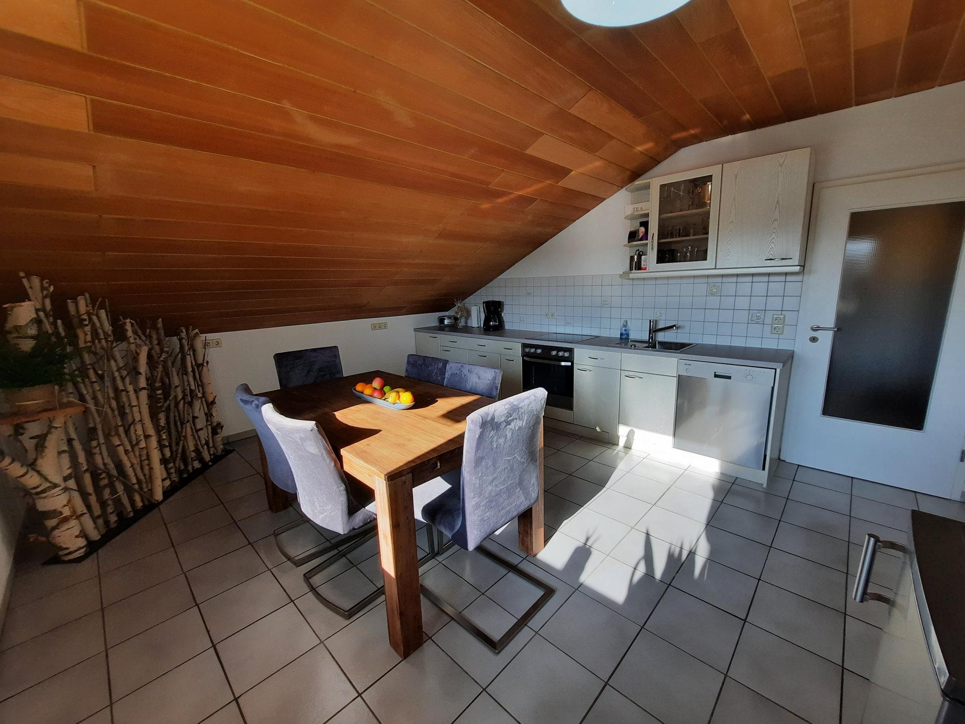 Die Ferienwohnung mit 85 qm verfügt über zwei Schlafzimmer mit je einem Doppelbett, zwei Flachbildschirmen, einer Sitzgelegenheit, einer voll ausgestatteten Küche mit Backofen, Herd, Kühlschrank,  Spülmaschine, Kaffeemaschine und Kochutensilien sowie einem Bad mit Dusche und Badewanne,  Gäste- WC und einer Diele mit Garderobe. Für unsere kleinen Gäste gibt es einen Spiele- und Bücherschrank.  Vom Balkon können Sie die Ruhe und Aussicht genießen mit einem Weitblick auf Eppingen.