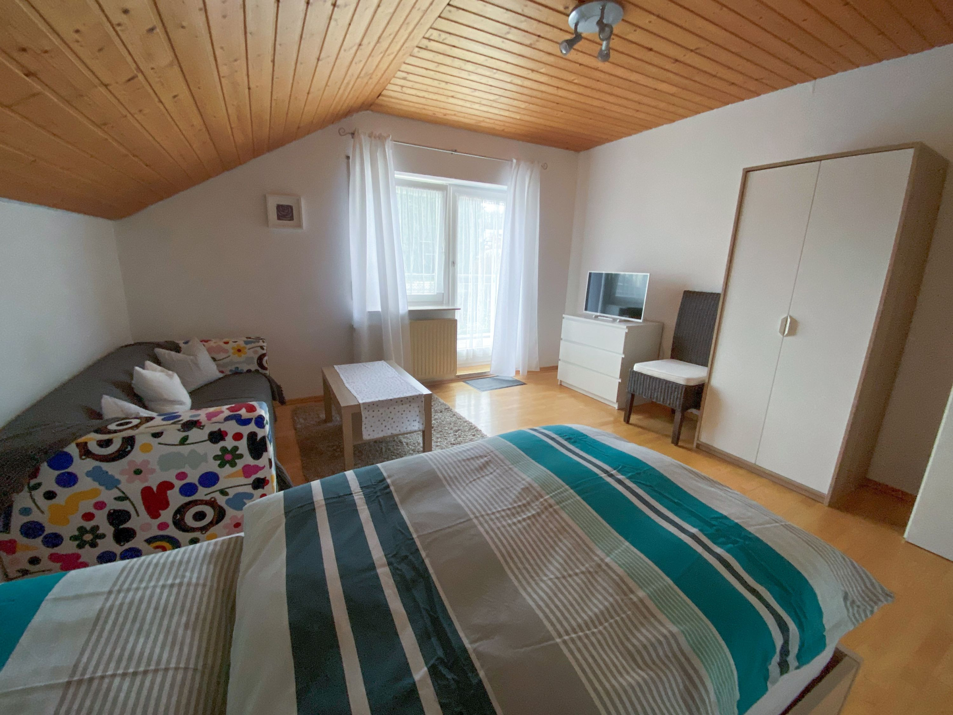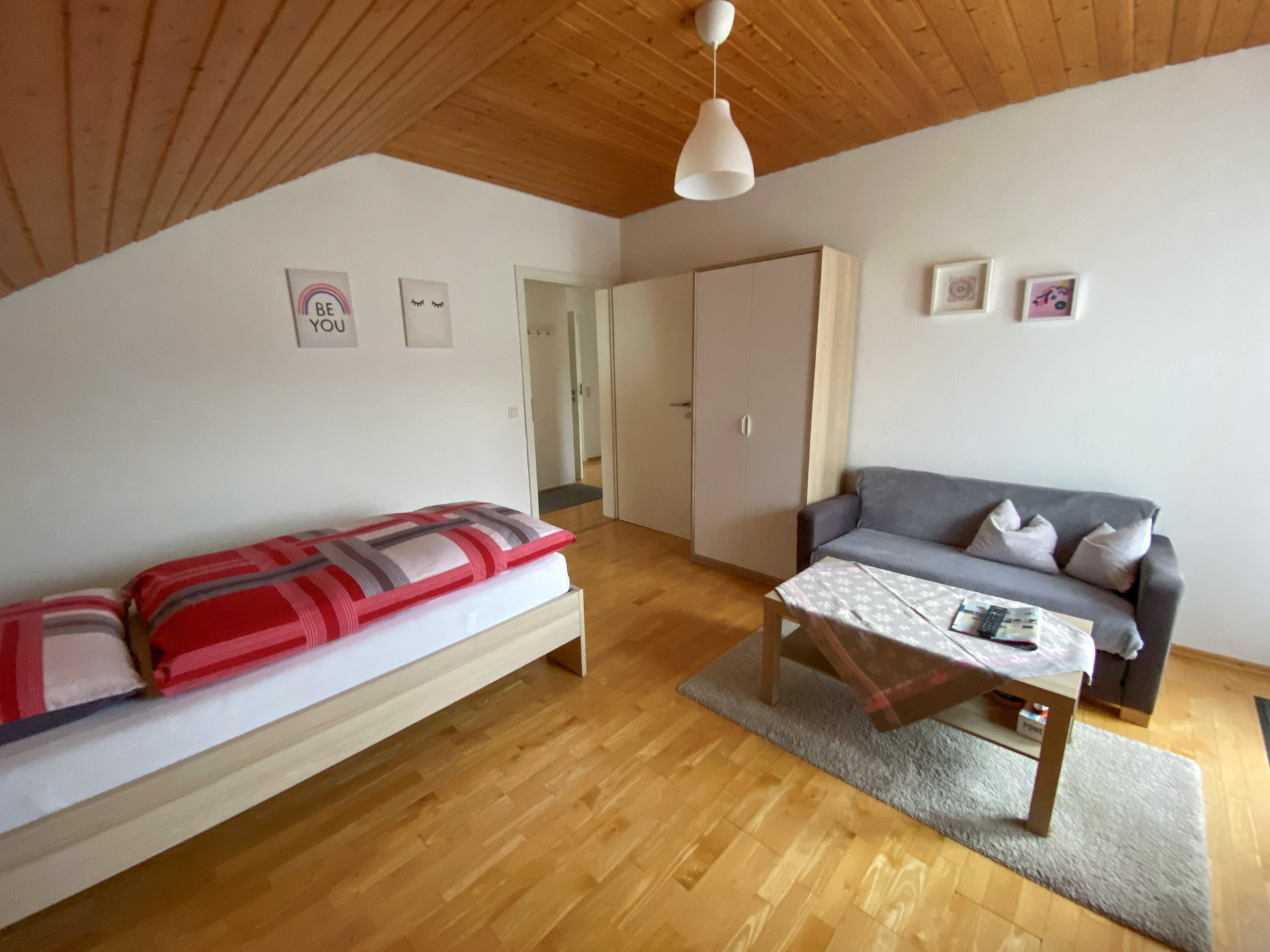 Zimmer mit einem Bett, einer Couch + Tisch und einem großen weißen Kleiderschrank | © Neckar-Zaber-Tourismus e.V.