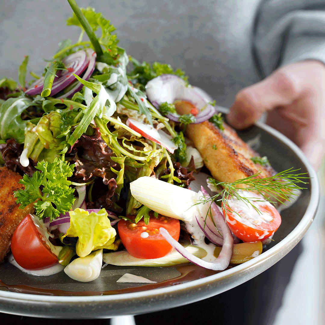 Aber auch in der Ebene wartet ein Hügel-Erlebnis auf Dich: die Hügel-Pause in Gärtners Rastaurant. Hier kannst Du dein Gravelbike, während Deiner Pause, in den Radständer einhängen. Yeahh!