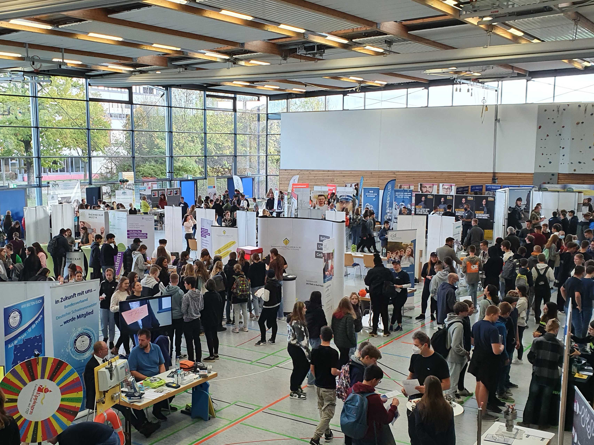 Die Ausbildungsmesse findet wieder verteilt über zwei Hallen, in der Stadthalle und in der Hardwaldhalle statt. Der Rundgang durch die Messe beginnt in der Stadthalle und führt weiter in die Hardwaldhalle.