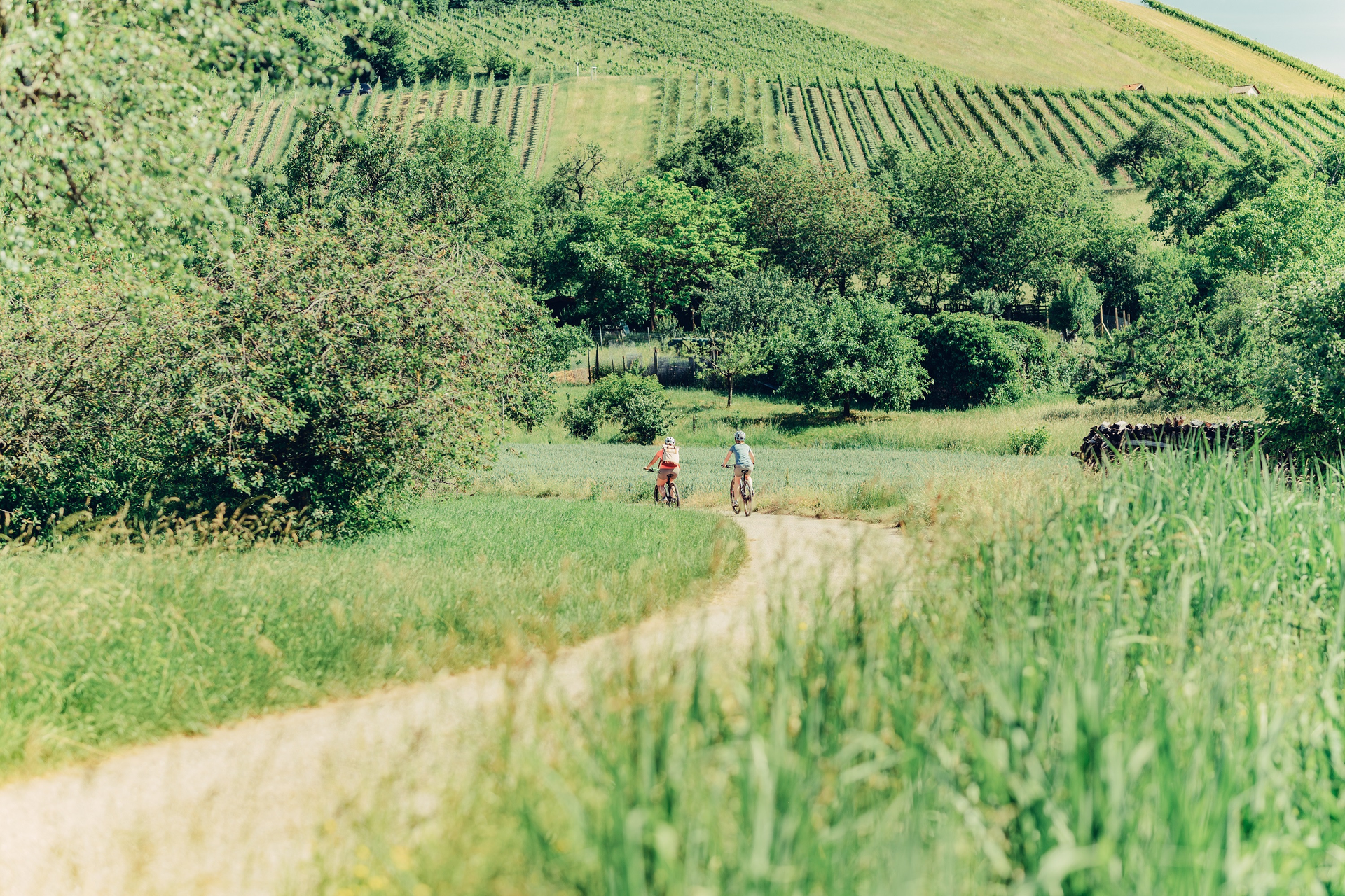 Beim Radeln entlang des Heuchelberg-Rückens werden immer wieder schöne Aussichten über das Zabergäu geboten. Hier heißt es: Weinberge, so weit das Auge reicht. Aber auch Wald- und Wiesenlandschaften sowie zahlreiche Einkehrmöglichkeiten gilt es zu entdecken. Der berühmte Lemberger lässt sich am besten bei regionaltypischer Kost genießen.