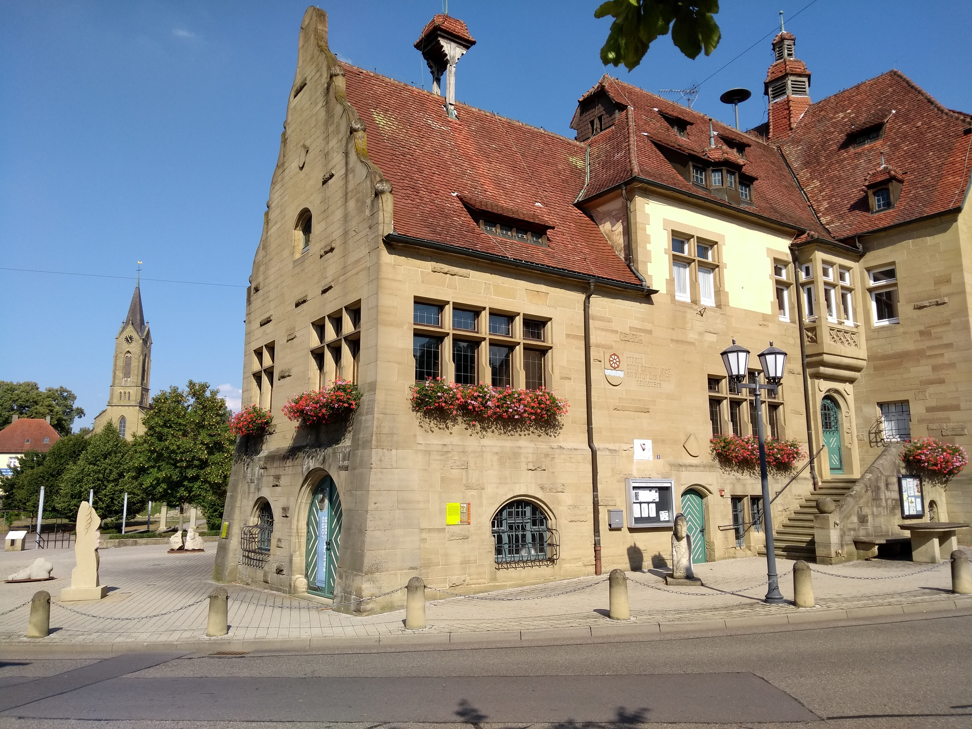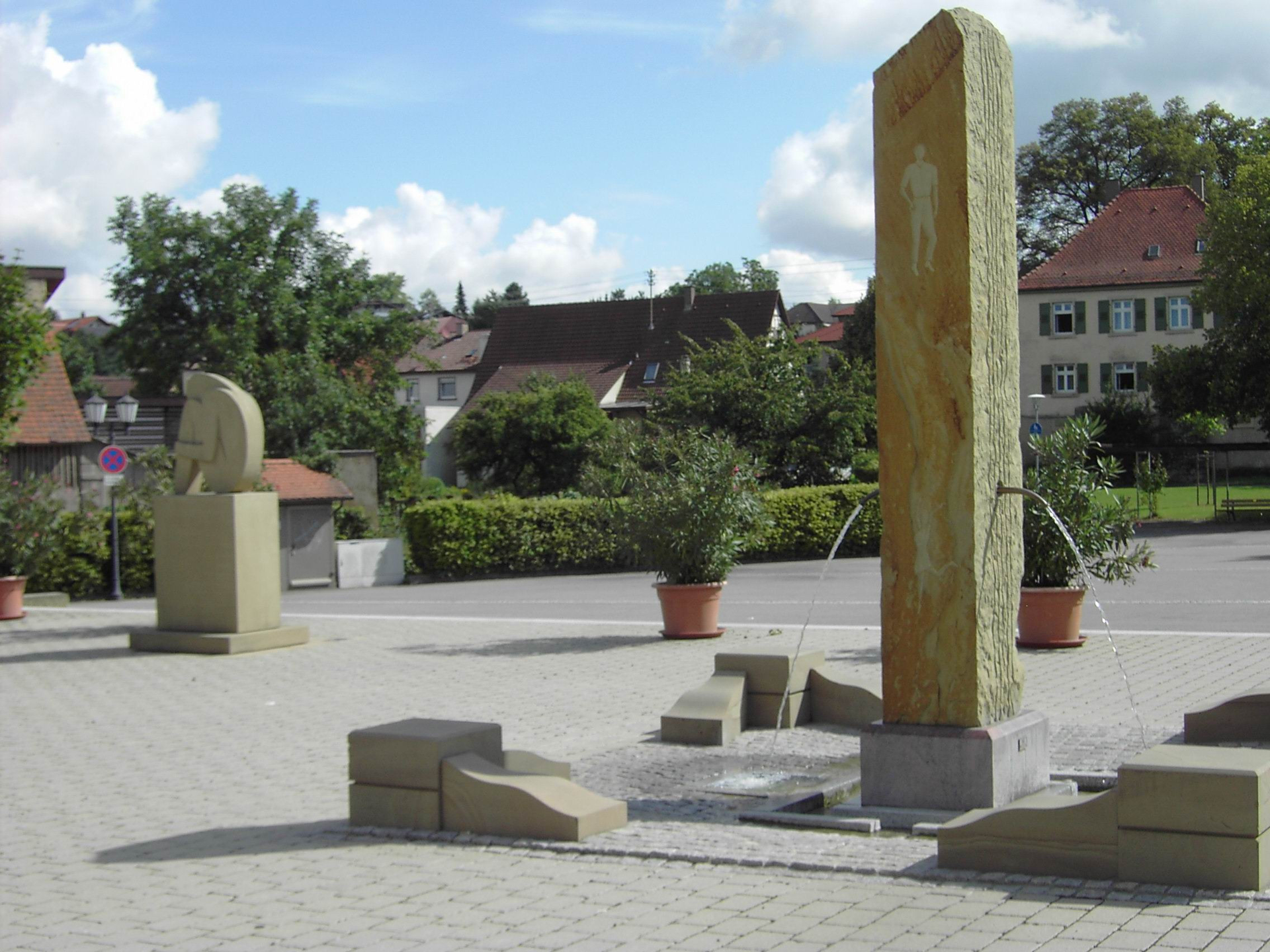 Sandsteinskulpturen auf dem Rathausvorplatz in Mühlbach | © Stadt Eppingen