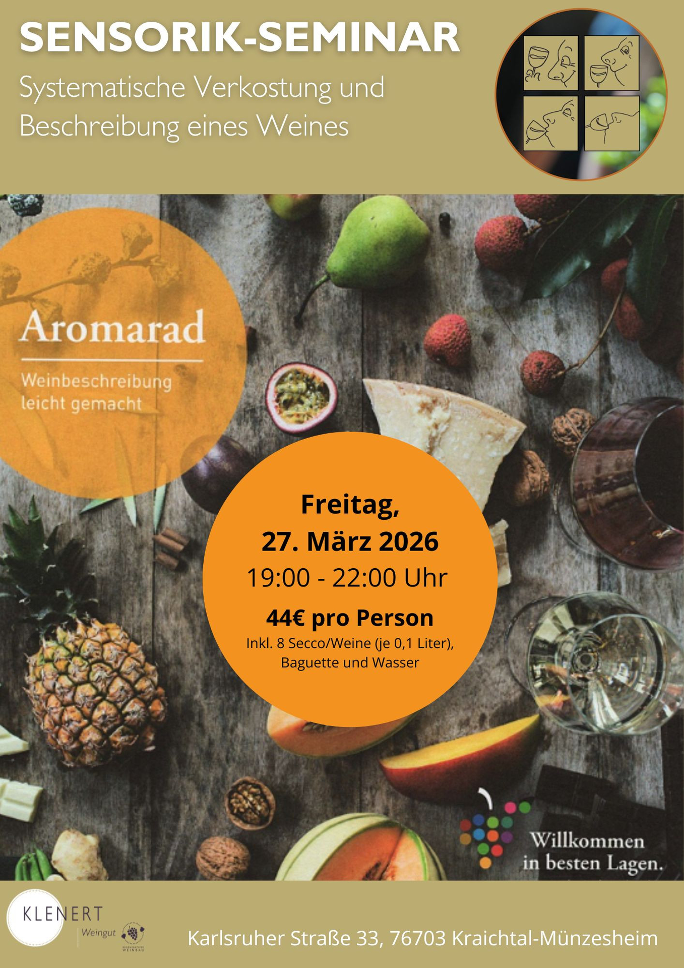 Das Seminar ist keine Trockenübung, sondern es werden etwa 8 Secco/Weine (je 0,1 Liter) aus der aktuellen Klenert-Kollektion verkostet.