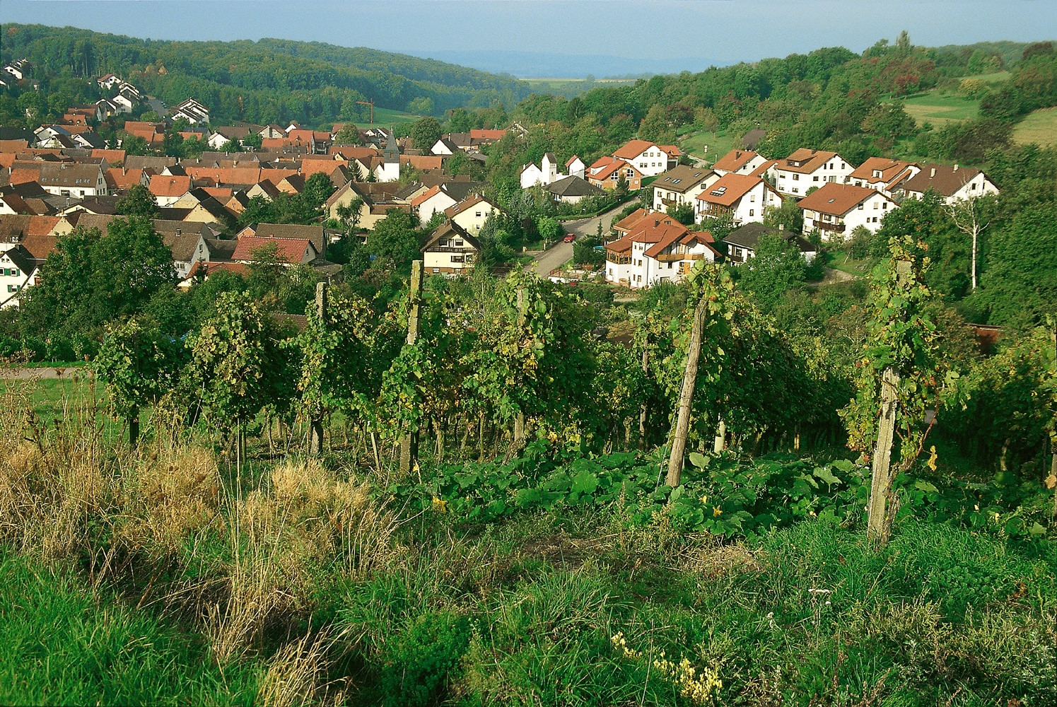Immer wieder lohnt sich hier ein Blick zurück auf den Ort und die Hügel des Kraichgaus.