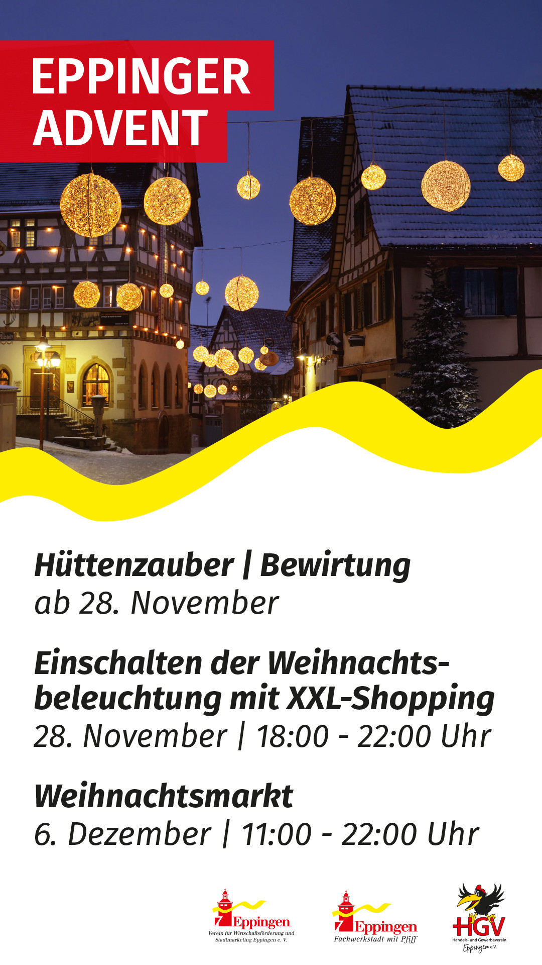 Weitere Advents-Highlights wie den Eppinger Advent mit Verkaufshütten, den Lebendigen Adventskalender, weihnachtliche Veranstaltungen in den Ortsteilen finden Sie unter www.eppingen.de