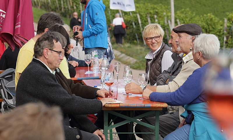 Gut lässt sich der Besuch am Weinausschank mit einem kurzen Spaziergang über den Weinlehrpfad gleich nebenan verbinden.