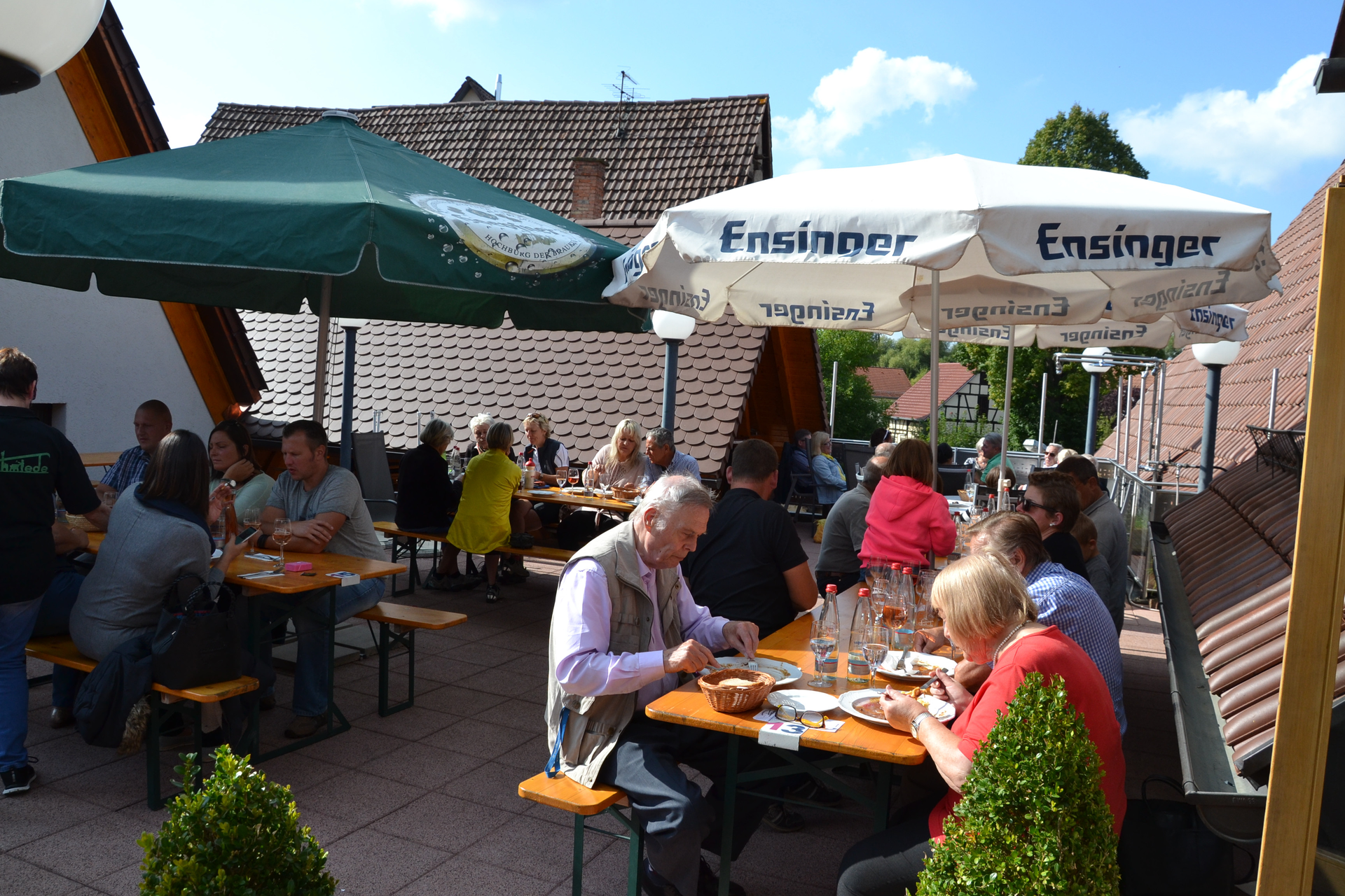Mitten im Ortskern, umgeben von alten Fachwerkhäusern, bietet die Weinstube mit eigenem Brennrecht für Edelbrände typische Besenkost und auch leckere Kuchen und Torten.