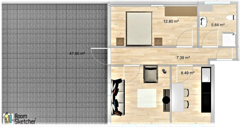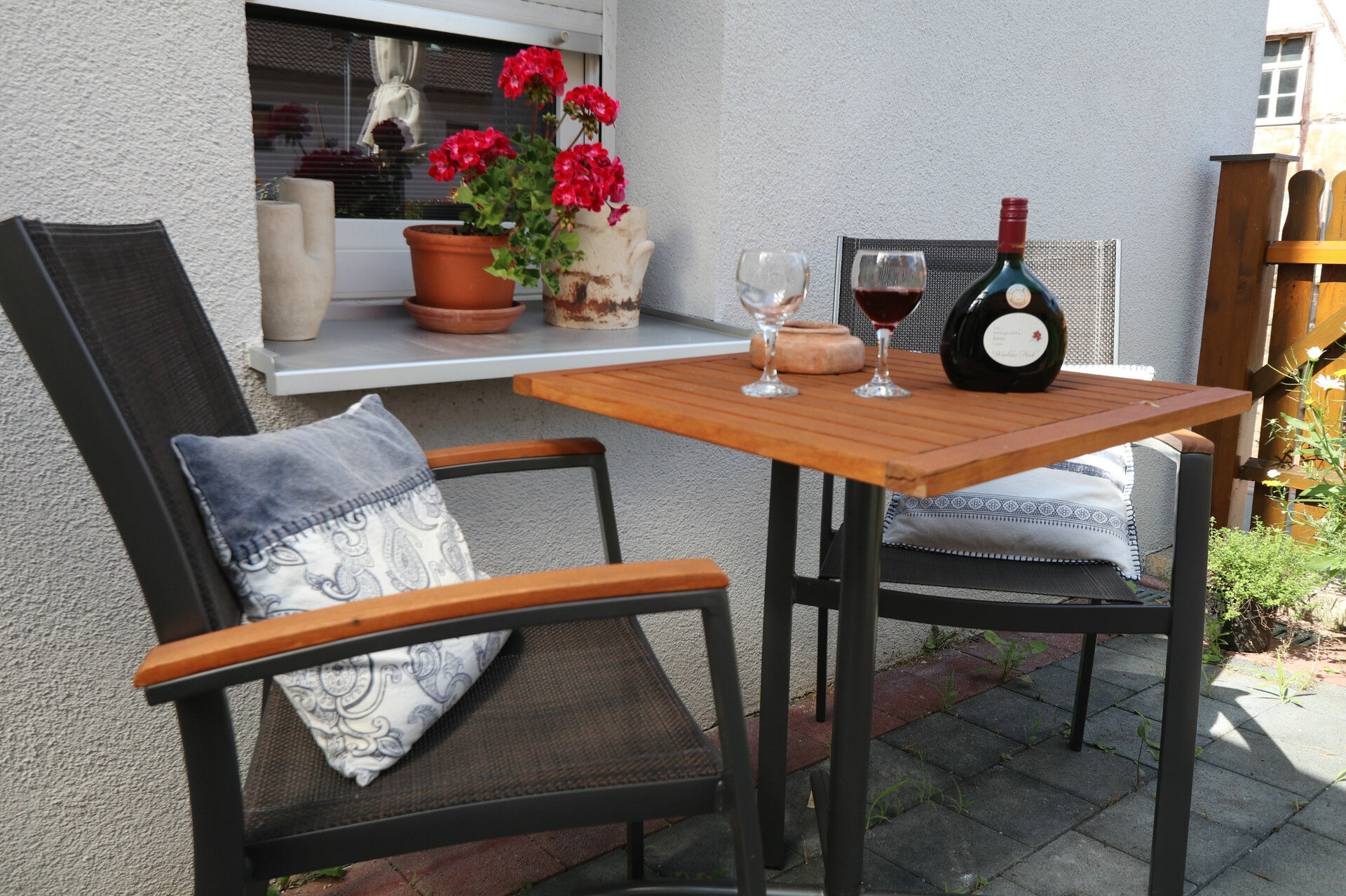 Die gemütliche und modern eingerichtete Ferienwohnung befindet sich direkt am Radweg und hat eine große umzäunte Terrasse.