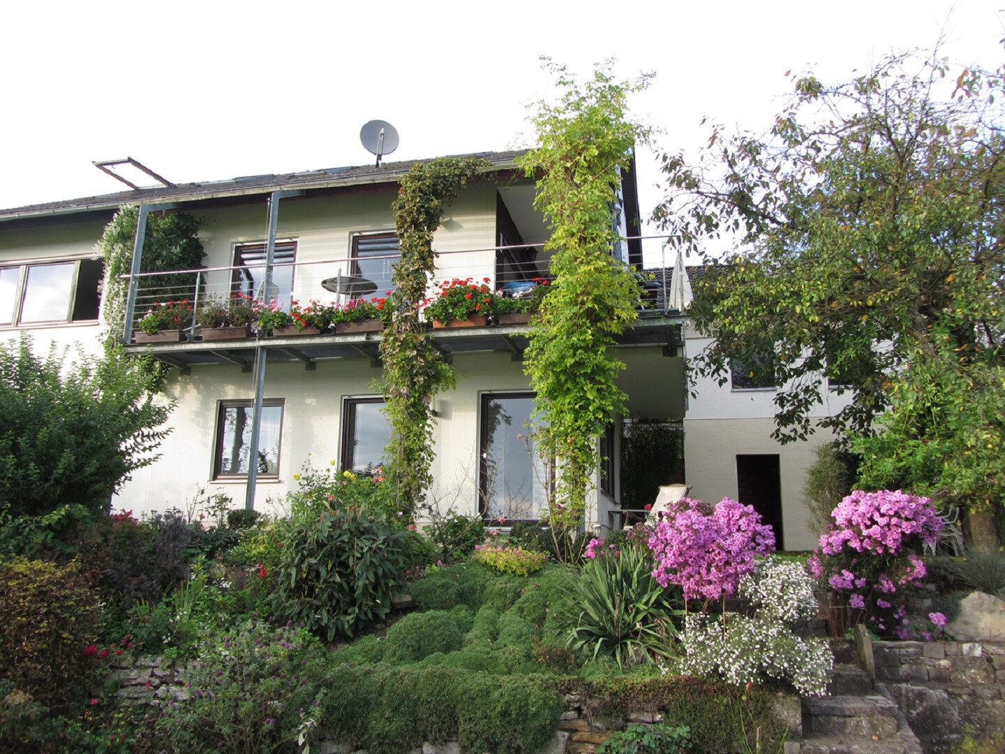 Beobachte Vögel, Schmetterlinge und Insekten und genieße die Vielfalt an Gewächsen und Blumen in unserem Garten, in dem Pestizide und Herbizide seit 50 Jahren tabu sind.