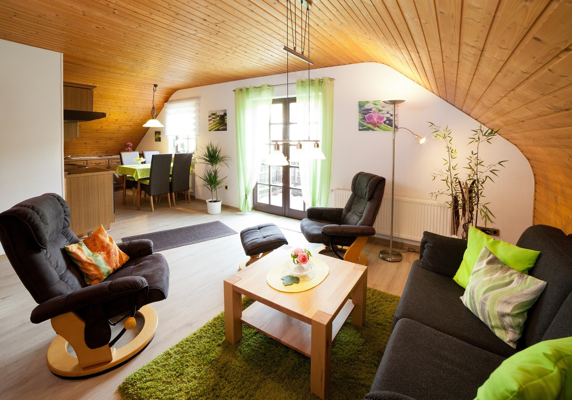 Unsere Ferienwohnung ist 65 qm groß mit einem separaten Eingang. Sie eignet sich für 2-3 Personen, welche Erholung, Entspannung und Ruhe suchen. Sie befindet sich im Obergeschoß und verfügt über einen großen Balkon, ein Stück Garten mit Grillplatz und Pergola runden unser Angebot ab.