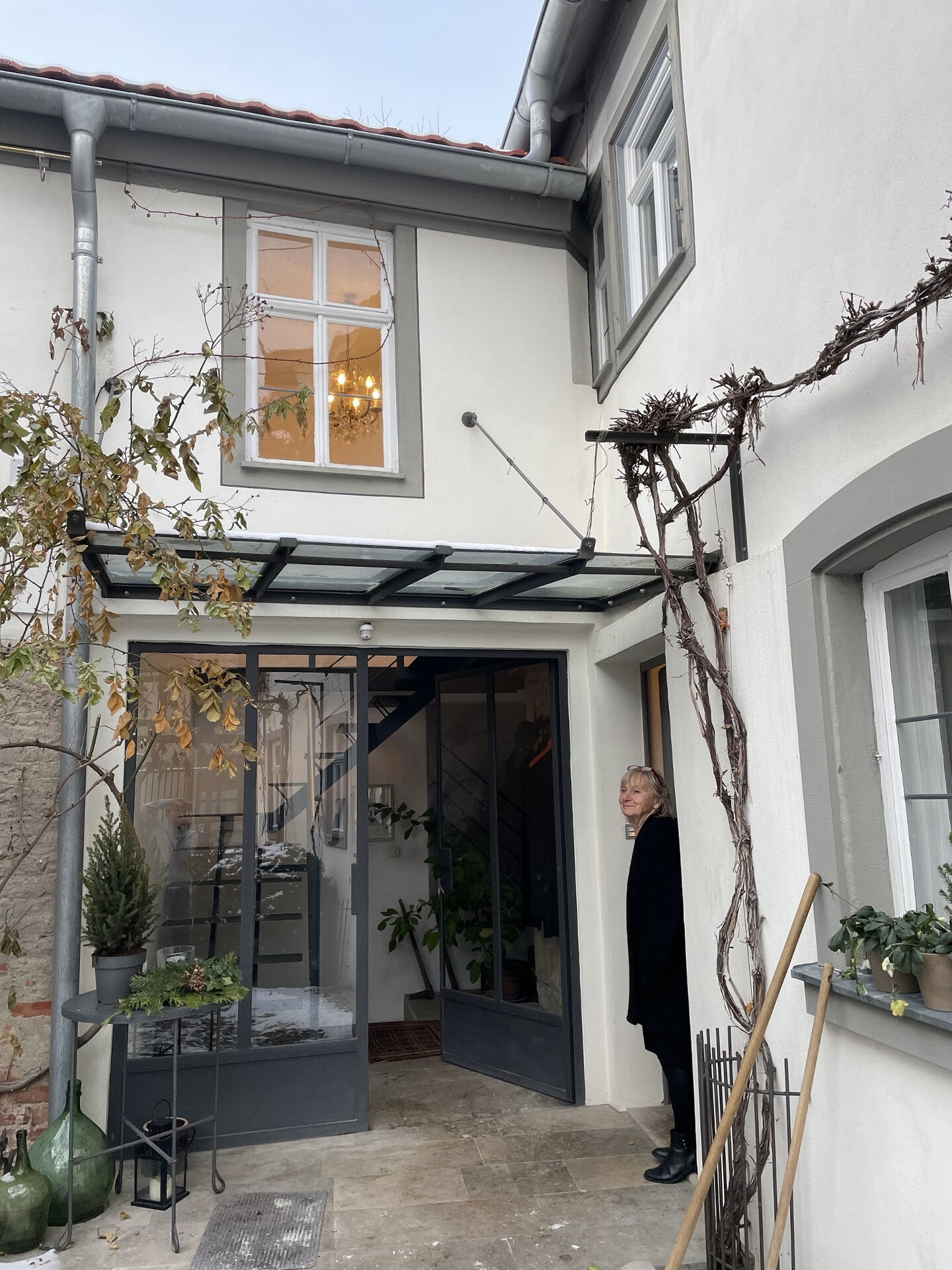 Im Hof befindet sich unter einem alten Nussbaum ein Außensitzplatz. Eine Parkmöglichkeit gibt es am Spitalmuseum, das circa 3 Minuten Fußweg entfernt ist. Gastronomie, eine Apotheke, ein Bäcker sowie ein Supermarkt bieten alles was man benötigt.