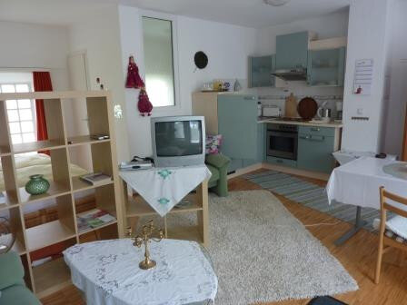 Weitere Leistungen und Ausstattungsmerkmale:- Ruhig gelegenes Nichtraucherhaus- großer Liegegarten mit Sitzgruppen und Pavillons- 50 m zum Fahrradweg - Wäsche vorhanden- Waschmaschine gegen Gebühr- Kunst- und Reiseliteratur vorhanden- die Ferienwohnungen und Zimmer sind ab 1 Nacht buchbar- Aufpreis bei Aufenthalt unter einer Woche- Aufpreis ab der 3. Person
