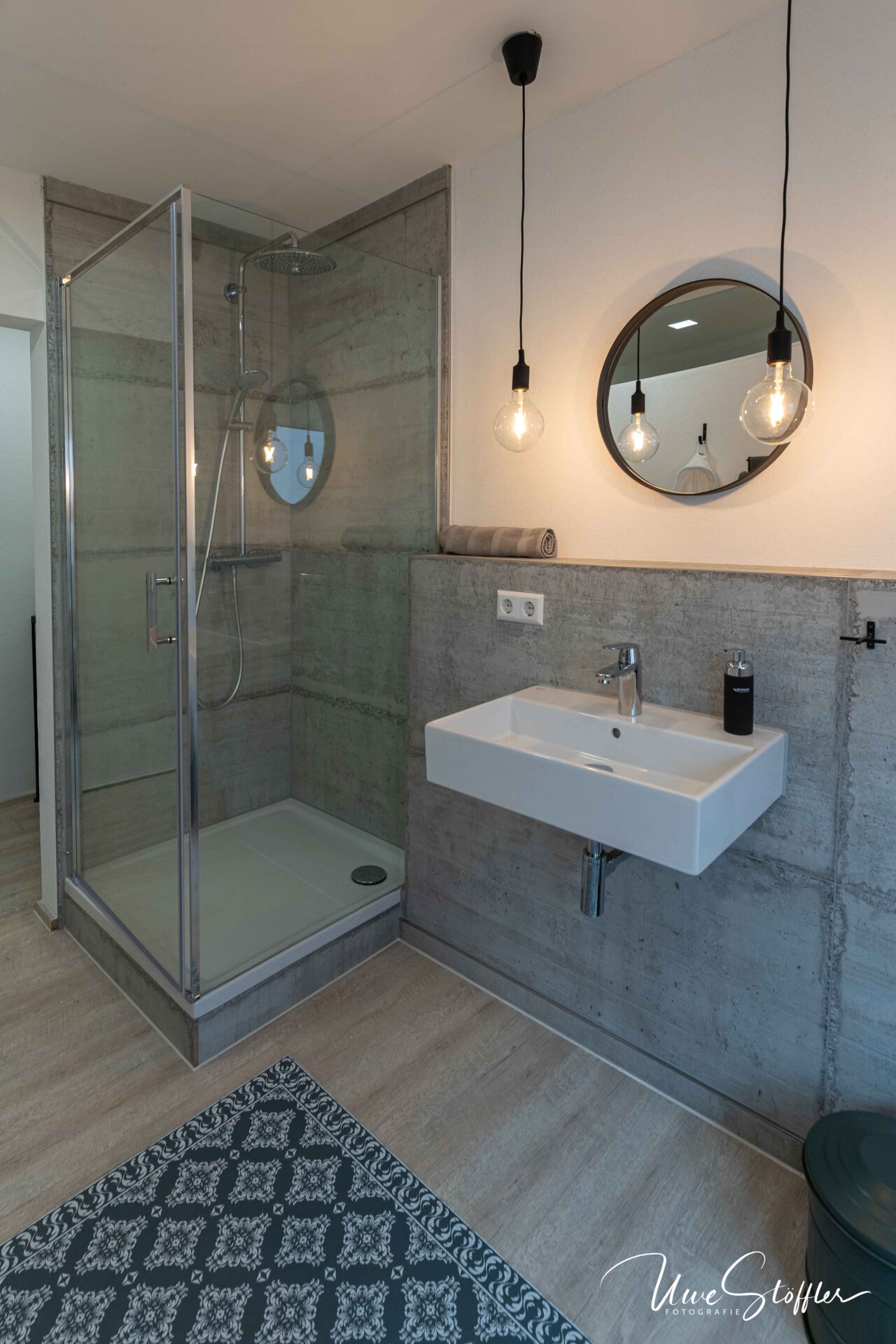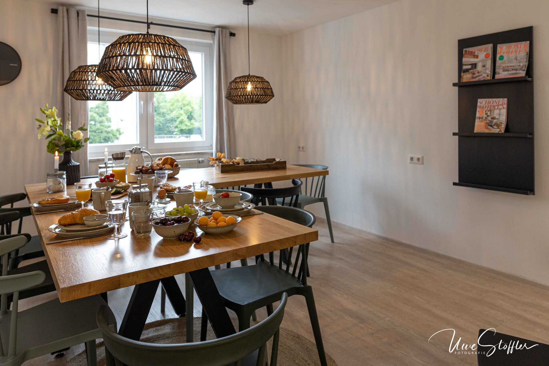 - Komfortzimmer im Obergeschoss: Diese neu renovierten Zimmer zeichnen sich durch schlichte Eleganz und Funktionalität aus. Mit einem Schreibtisch und hochwertigen Büroaccessoires sind sie besonders für Geschäftsreisende geeignet. Die puristischen und klaren Bäder verfügen über moderne Duschen und WCs. Im Obergeschoss gibt es eine hochwertig ausgestattete Gemeinschaftsküche mit Balkon, die zum Verweilen und gemeinsamen Kochen einlädt. Das angrenzende Esszimmer bietet ausreichend Platz für gemütliche Mahlzeiten.