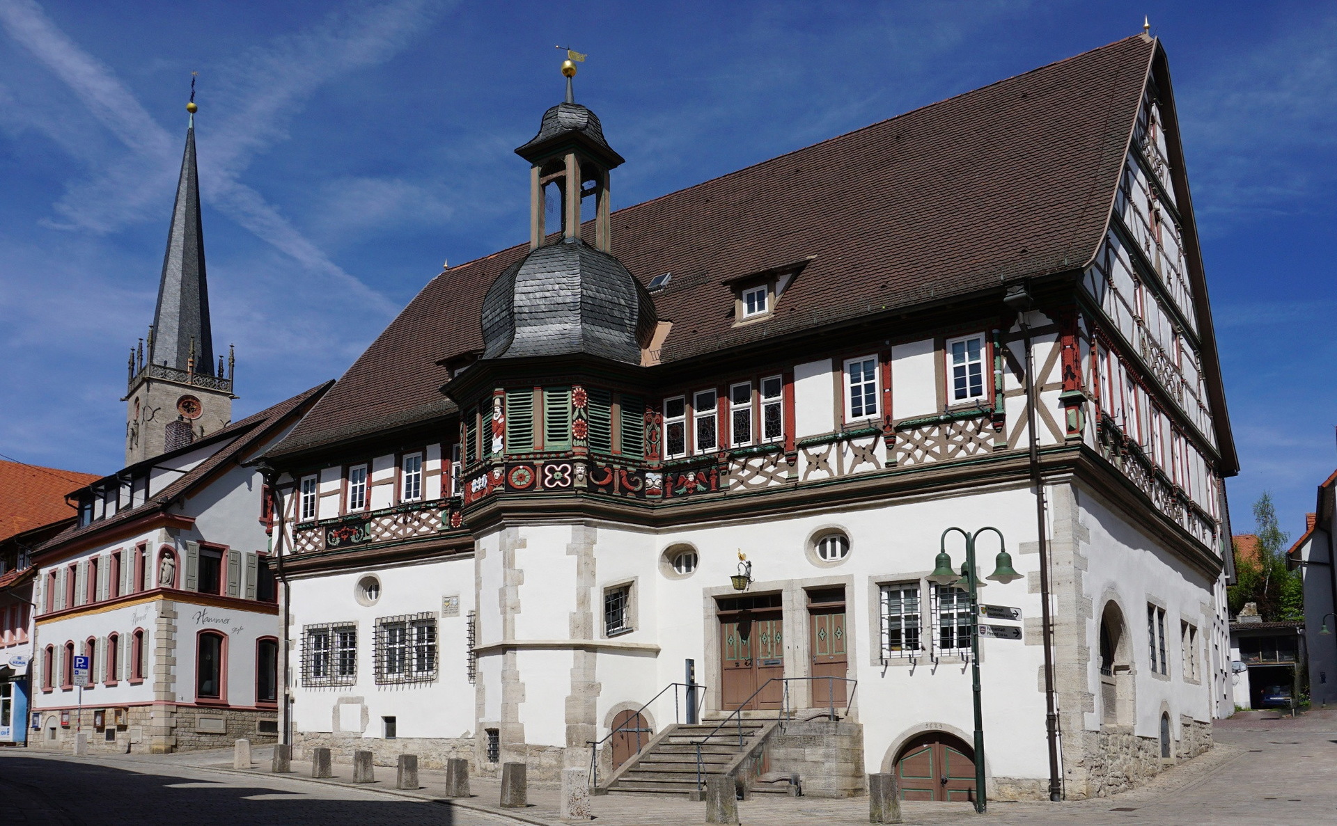 Das fränkische Städtchen Grünsfeld bietet Erholungssuchenden wie Kunstliebhabern vielfältige Ziele. Besonders das historische Fachwerkrathaus aus dem Jahr 1579 beeindruckt mit seinem reich verzierten Schnitzwerk und gilt als einer der schönsten Profanbauten Frankens. Auf dem Schorrenfelsen zeugen Reste der ehemaligen Burganlage mit Wehrgang von der mittelalterlichen Geschichte der Stadt. Das frühere Amtshaus beherbergt heute das Museum, das spannende Einblicke in die lokale Geschichte bietet.