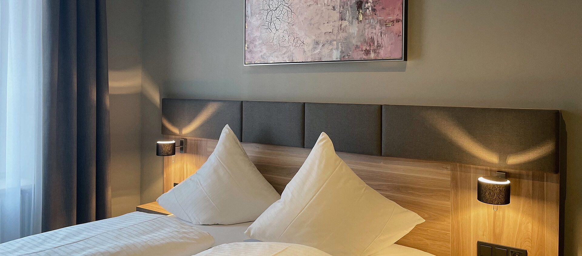 The listed building of the hotel "Das Bischof" in Tauberbischofsheim was extensively renovated in 2021. Look forward to ultra-modern rooms, a delicious breakfast in the morning, a restaurant serving fine Italian and regional cuisine, and the casual hotel bar.