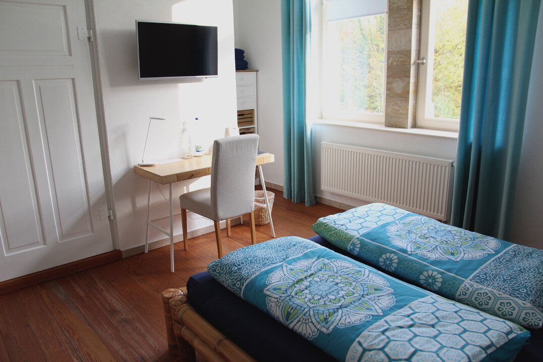 Die Zimmer befinden sich im 1. Stock des Bahnhofgebäudes und sind individuell nach Themen (Holz/Wasser/Eisen) eingerichtet und mit eigenem Bad (Dusche/WC,freiem W - LAN und einem Flachbildschirm ausgestattet. Bei der Renovierung wurden ökologische Baustoffe verwendet.