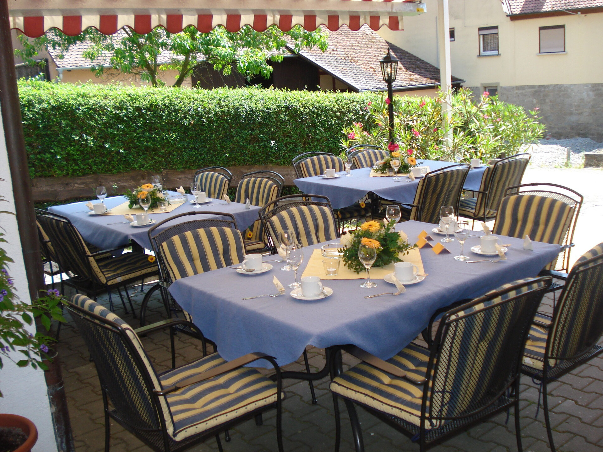 Historisches Gasthaus mit regionalen fränkischen Spezialitäten, komfortable Gästezimmer, Feiern in der Fachwerkscheune, eigene Erzeugnisse wie Wein, Honig, usw.