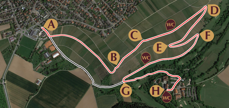 - Entlang der ca. 5 km Wanderroute durch die Weinberge können an verschiedenen Weinständen die regionalen Tropfen verkostet werden. An den Ständen werden zudem alkoholfreie Getränke und Snacks angeboten.