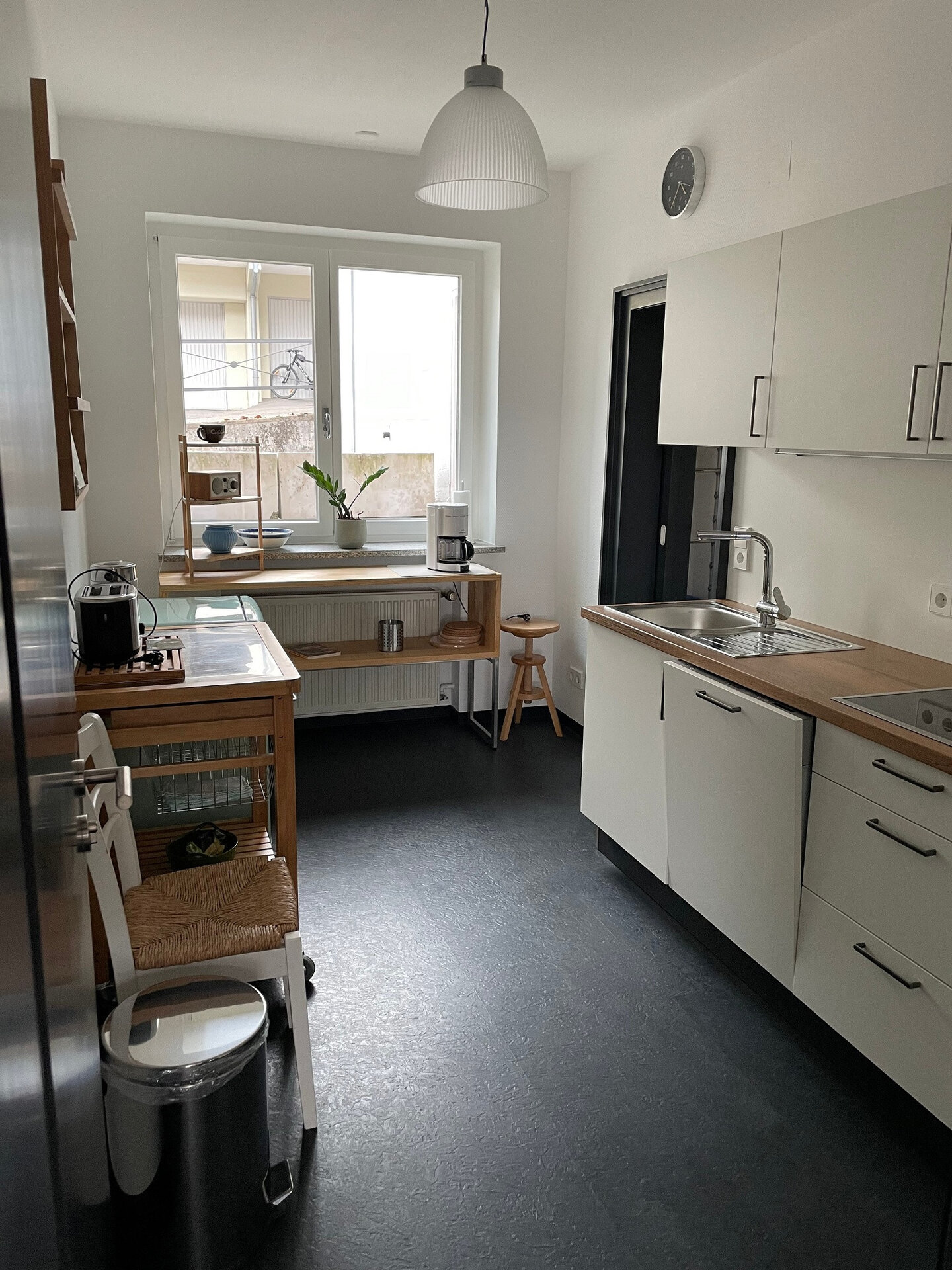 - Küche mit hochwertiger Küchenausstattung: Kühlschrank, Geschirrspüler, Wasserkocher, Kaffeemaschine, komplette Geschirr- und Kochausstattung