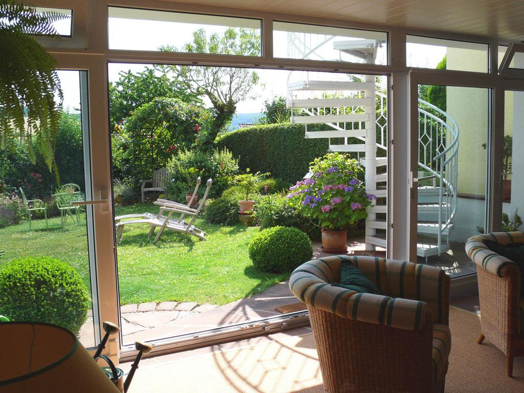 Wintergarten/Wohnzimmer (ca. 25 qm) auf einen idyllisch angelegten