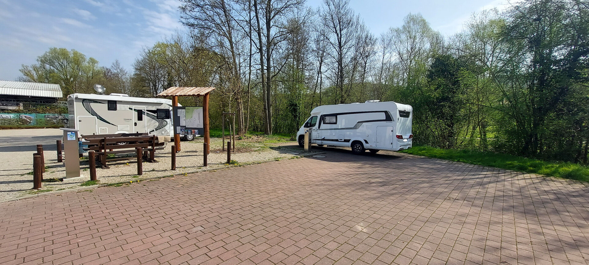 Die Einfahrt zum Wohnmobilstellpaltz finden Sie 100 m vor dem Eisenbahnübergang zur Waldstadt nach einer Brücke über die Elz (Bushaltestelle).