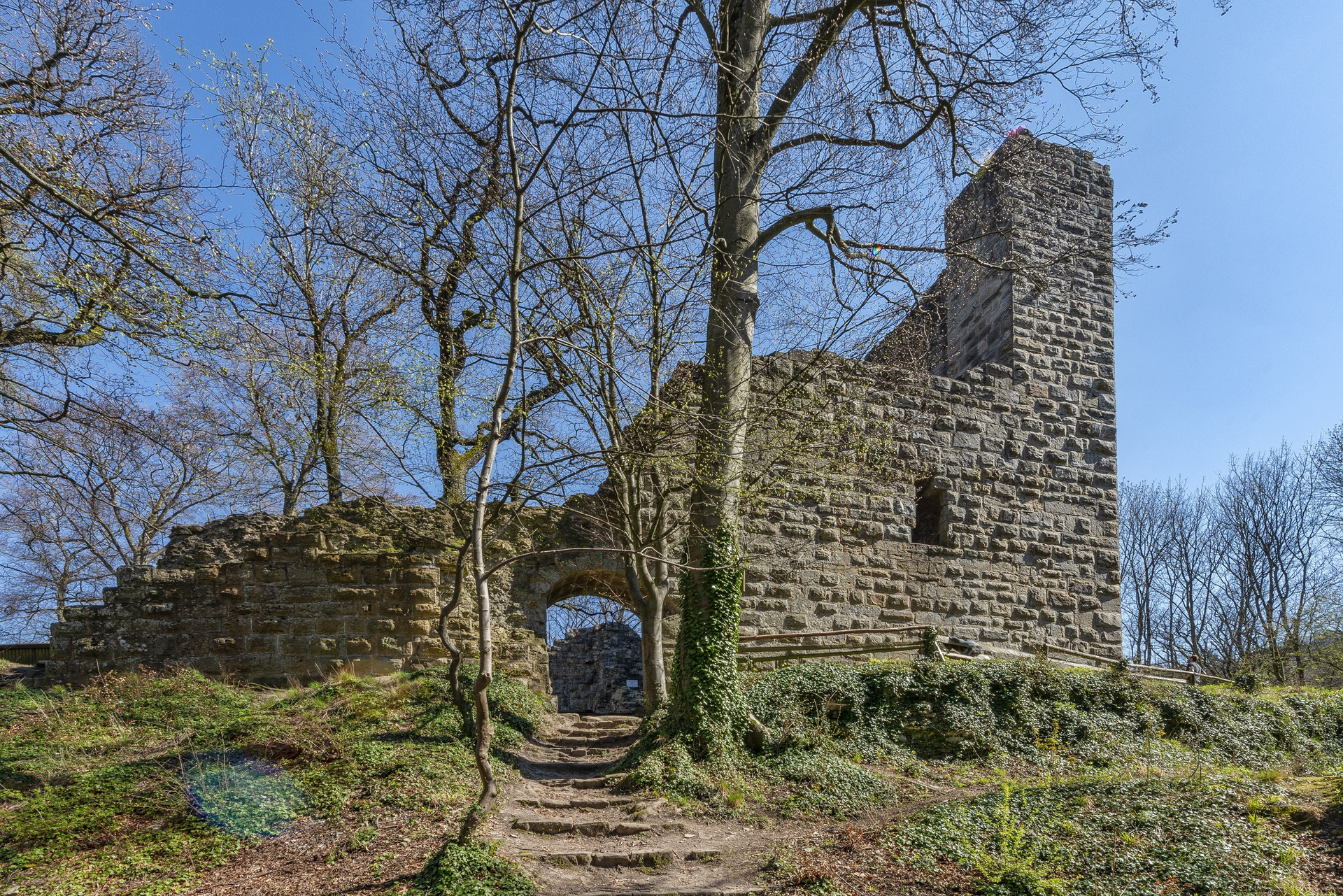 Vom Wanderparkplatz Burg Blankenhorn über die Himmelsleiter hinauf zur Burgruine | ca. 550 m Fußweg & 60 Hm. - Familienausflug