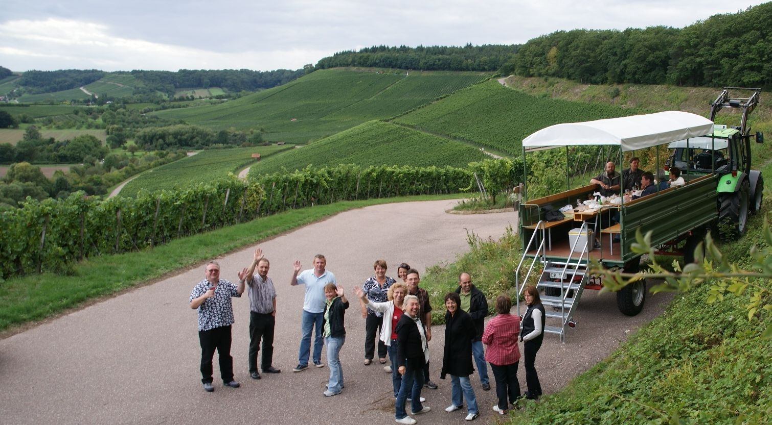 Ganz entspannt geht es mit dem Lemberger Express durch die malerischen Weinberge rund um den Weinsüden Weinort Brackenheim. Während dieser rollenden Weinprobe mit dem Planwagen erfahren Sie interessante Geschichten und alles Wissenswerte über Land und Leute, Weinbau und die Region.