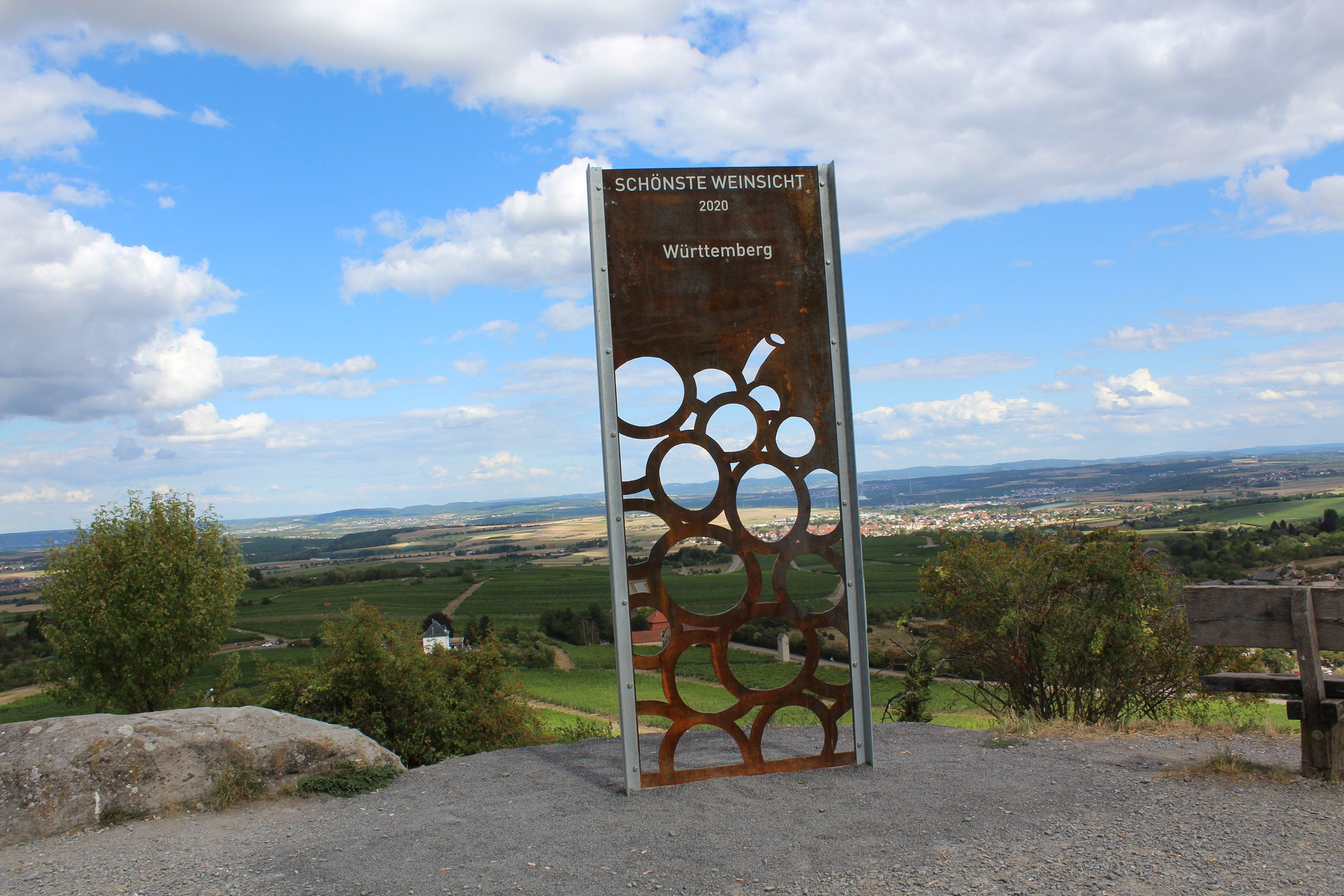 Die "Schönste Weinsicht Württemberg" liegt am Michaelsberg Cleebronn, kurz unterhalb der Tagungsstätte. Eine künstlerisch gestaltete Stele ist perfekt als Selfie-Point und Foto-Spot geeignet.