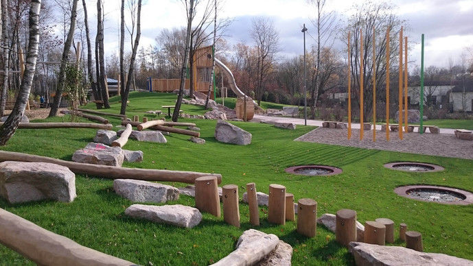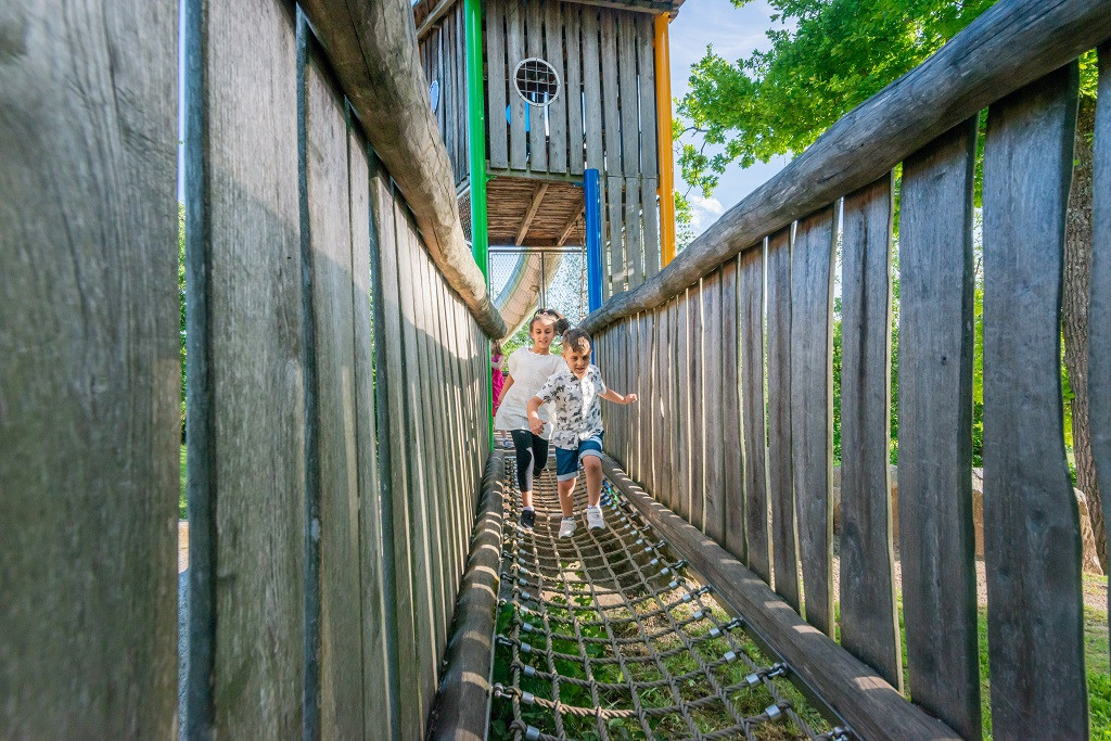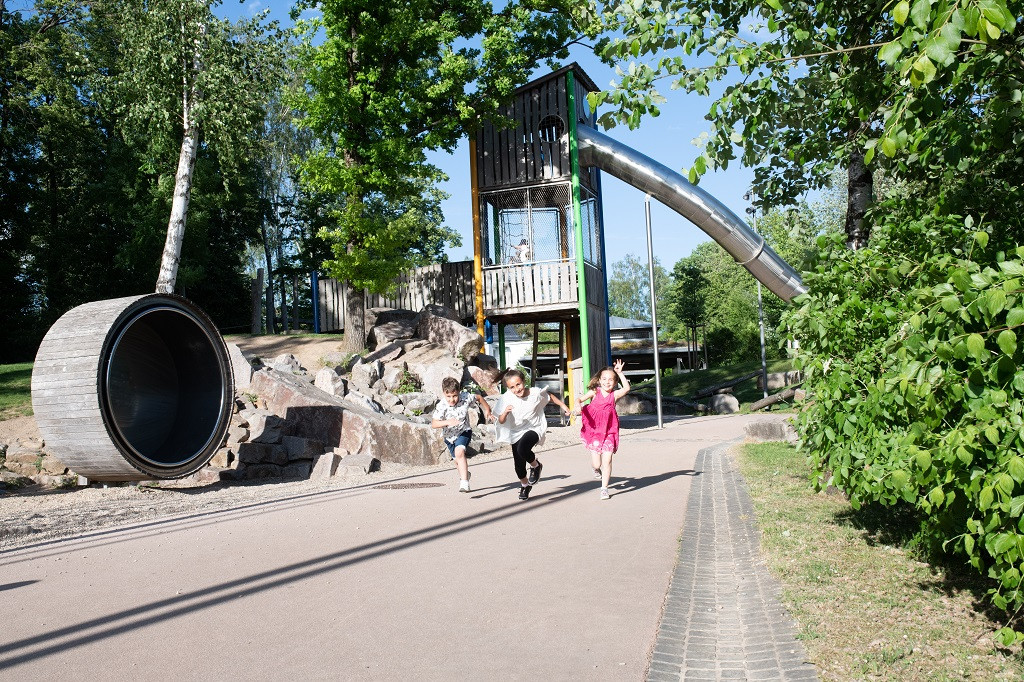 Ein toller Treffpunkt für die Jüngsten (bis ca. 6 Jahre) ist der Kinderspielplatz. Dieser soll spielerisch die Sinneswahrnehmung und die Bewegung fördern. Ein Pavillion, der Wetterschutz bietet, ermöglicht das Spielen auch bei schlechtem Wetter. Zudem sind Sitzgelegenheiten und Sanitäranlagen vorhanden.