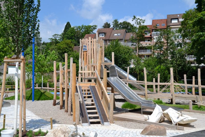Ein toller Treffpunkt für die Jüngsten (bis ca. 6 Jahre) ist der Kinderspielplatz. Dieser fördert spielerisch die Sinneswahrnehmung und die Bewegung. Ein Pavillon, der Wetterschutz bietet, ermöglicht das Spielen auch bei schlechtem Wetter. Zudem sind Sitzgelegenheiten und behindertengerechte Sanitäranlagen mit Wickelmöglichkeit vorhanden.