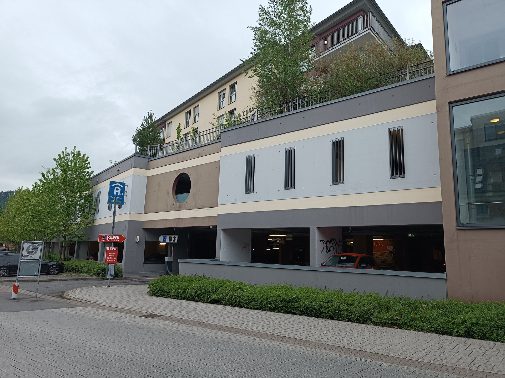 Etwas versteckt, jedoch für den Besuch der Weinheimer Altstadt, den Geschäften in der Fußgängerzone oder auch zum Erkunden des Grüffelopfads zentral gelegenes Parkhaus in der Grundelbachstraße in Weinheim.