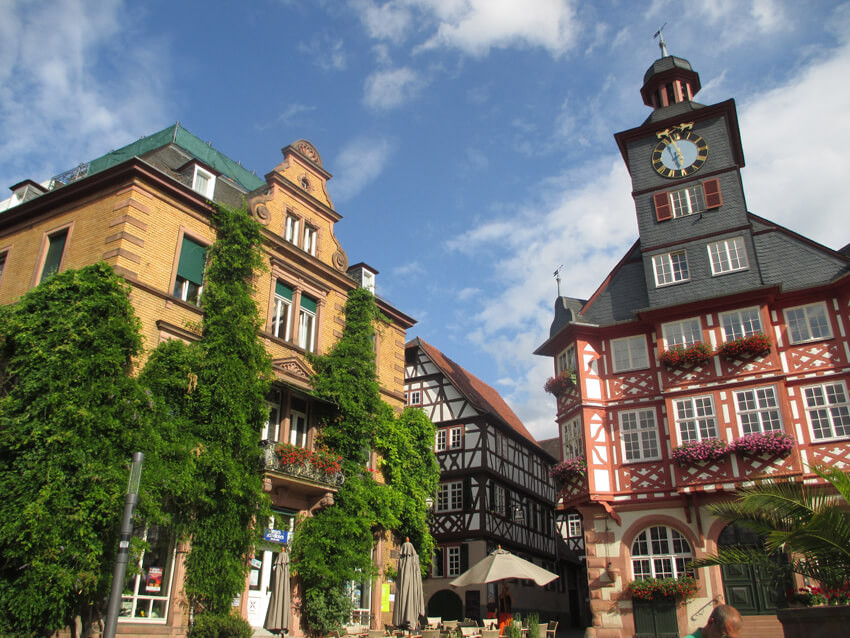 Von Heppenheims Altstadt (s. S. 12) läuft man am Friedhof vorbei, durch die Weinberge nach Laudenbach. Dabei wechselt man an der „grünen Landesgrenze“ zwischen Hessen und Baden-Württemberg, das Anbaugebiet. Heppenheim zählt zur „Hessischen Bergstraße“,