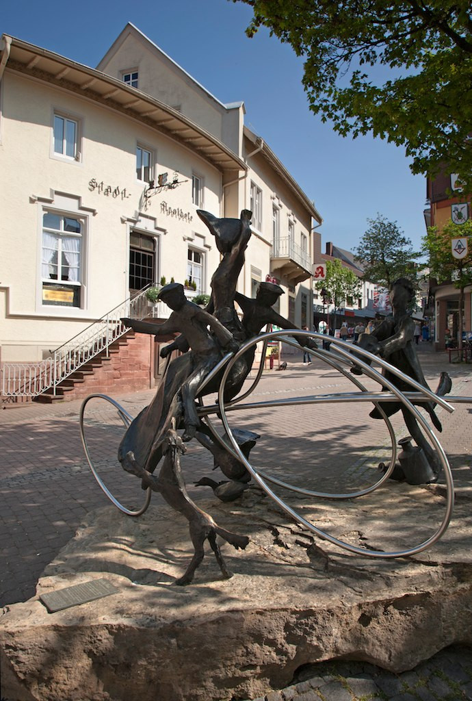 In Wiesloch ging Bertha Benz bei der ersten Überlandfahrt mit dem neu entwickelten Motorwagen ihres Mannes das Benzin aus. Sie wusste sich zu helfen und wendete sich an den Stadtapotheker, der konnte ihr mit ein paar Litern Ligroin, eine Art Waschbenzin, aushelfen. An diesem Platz erinnert eine von Pit Elsasser (Wiesloch) geschaffene Plastik an die damals stürmische und abenteuerliche Fahrt. Noch heute vergeht kaum ein Jahr, an der nicht an dieser historischen Stätte die Oldtimer vergangener Jahrzehnte eine Rast einlegen.