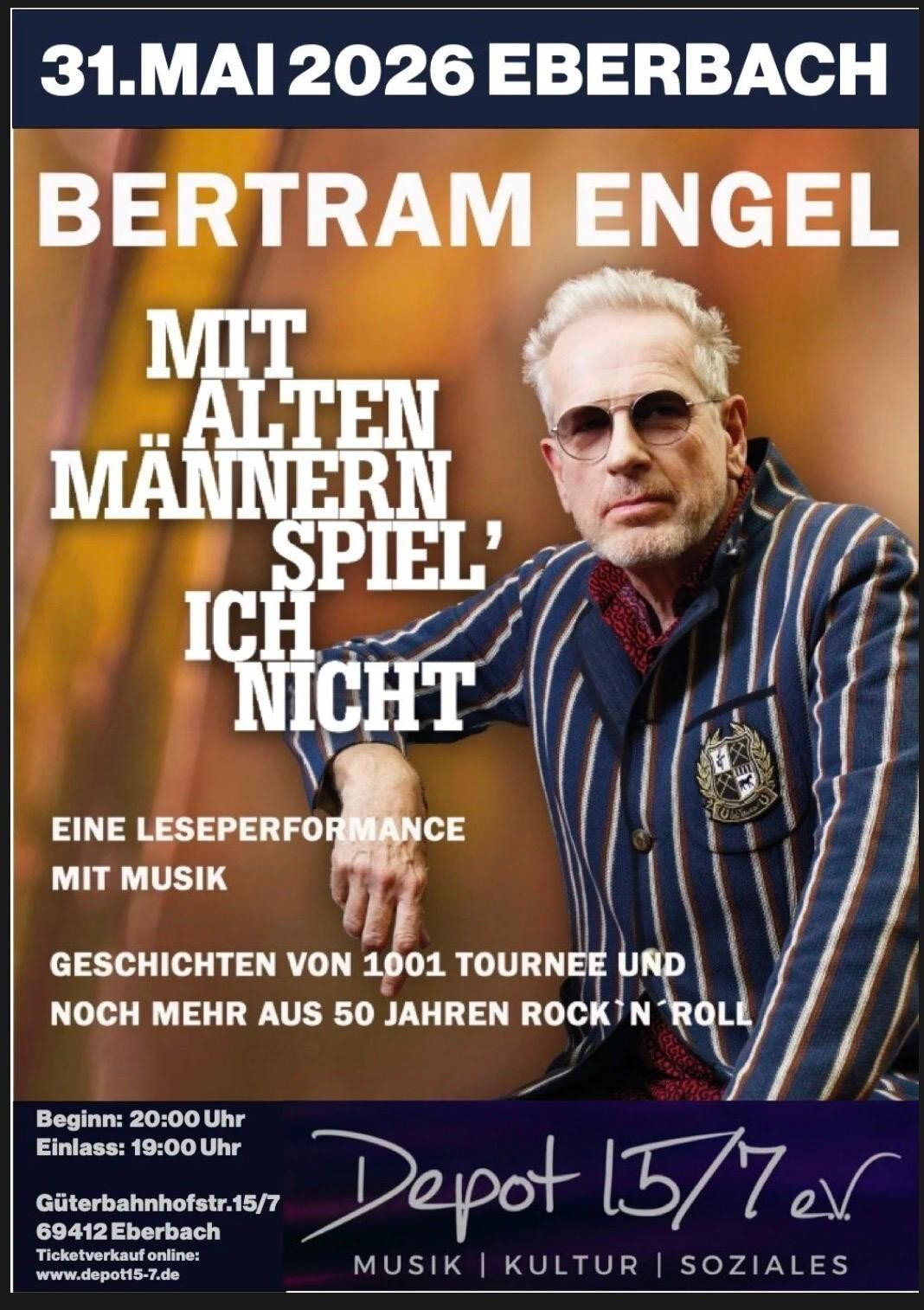 Tickets online unter Lesung - Bertram Engel | Mit alten Männern spiel' ich nicht - Depot 15/7 in Eberbach - 31.05.2026