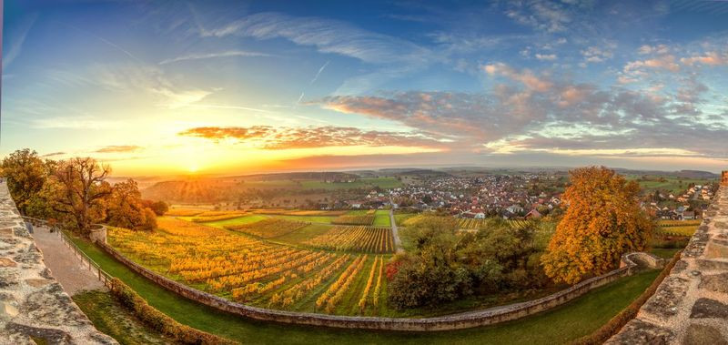 Panorama-Sonnenaufgang über Weiler und den Weinbergen | © Stadtverwaltung Sinsheim