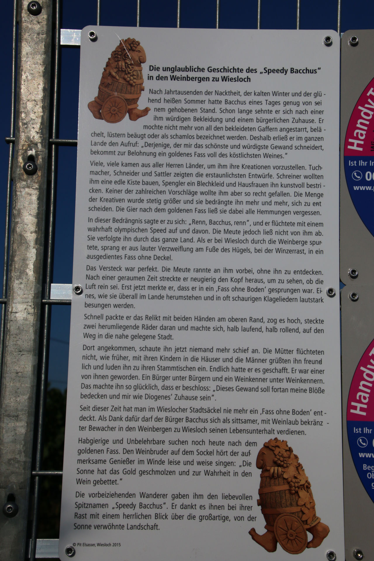 An diesem schönen Fleckchen trohnt auch die Bacchus-Figur "Speedy Bachus", die 2015 vom Bildhauer Alan David Cossens geschaffen wurde.