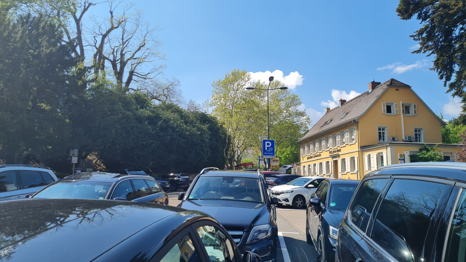 Parkplatz am Schau- und Sichtungsgarten Hermannshof in Weinheim. Die Grünen Meilen und die Sehenswürdigkeiten sind von hier in wenigen Gehminuten erreichbar.