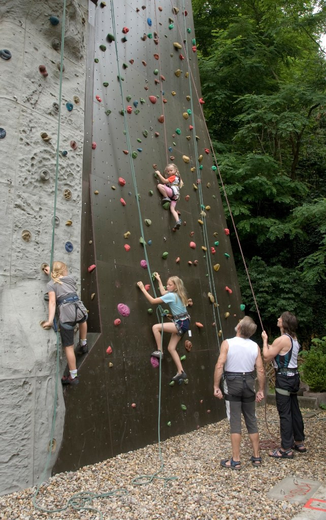 Der Turm ist ein 10 Meter hoher künstlich angelegter Kletterturm mit idealen Bedingungen für Anfänger, Könner und Kinder.