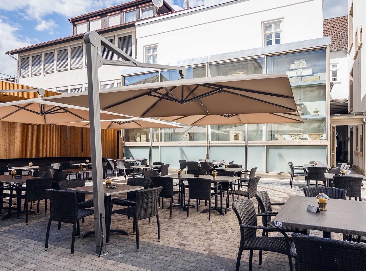 Außenterrasse Restaurant Drei Könige mit Sonnenschirm