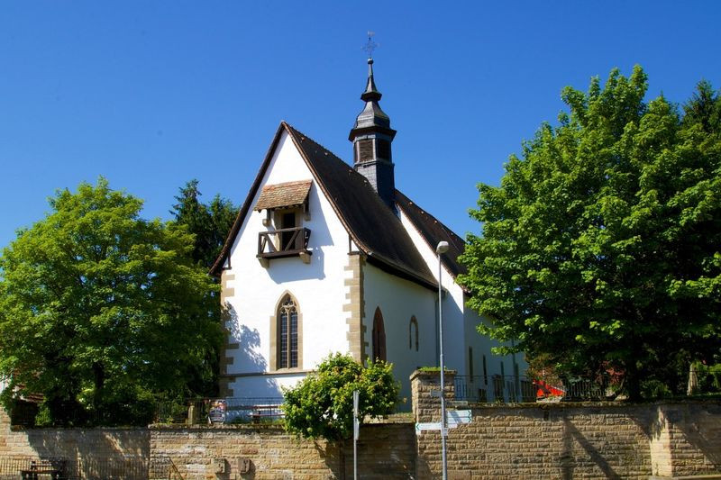 Kulturdenkmäler in Nordbaden. Auf dem Türmchen der Kirche hängt die älteste
