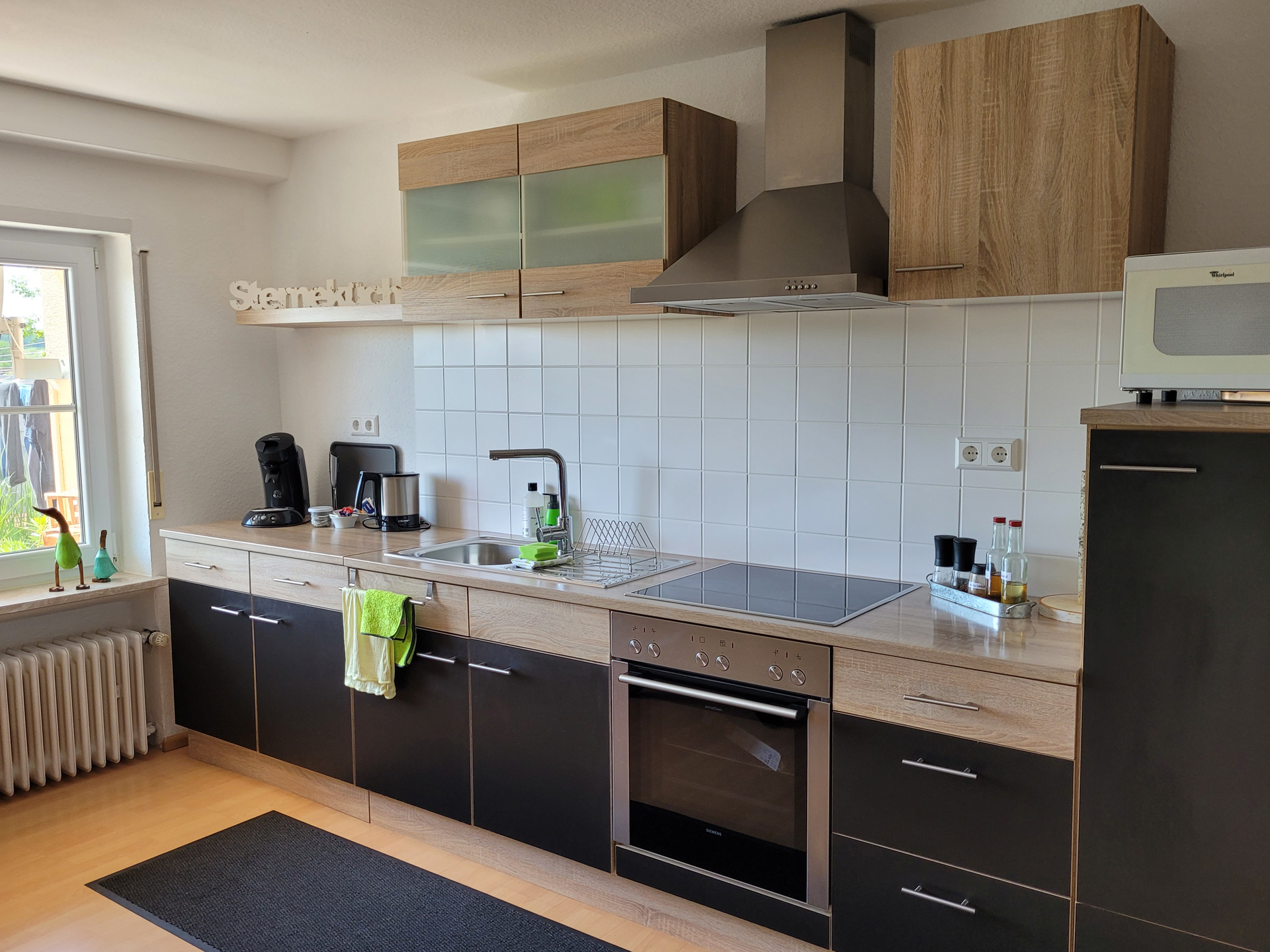 Die Küche ist mit allem ausgestattet was man braucht. Sie verfügt über einen Kühlschrank mit Gefrierfach, Mikrowelle, Herd mit Backofen, Spülmaschine, Toaster, Pad-Kaffeemaschine und Wasserkocher.