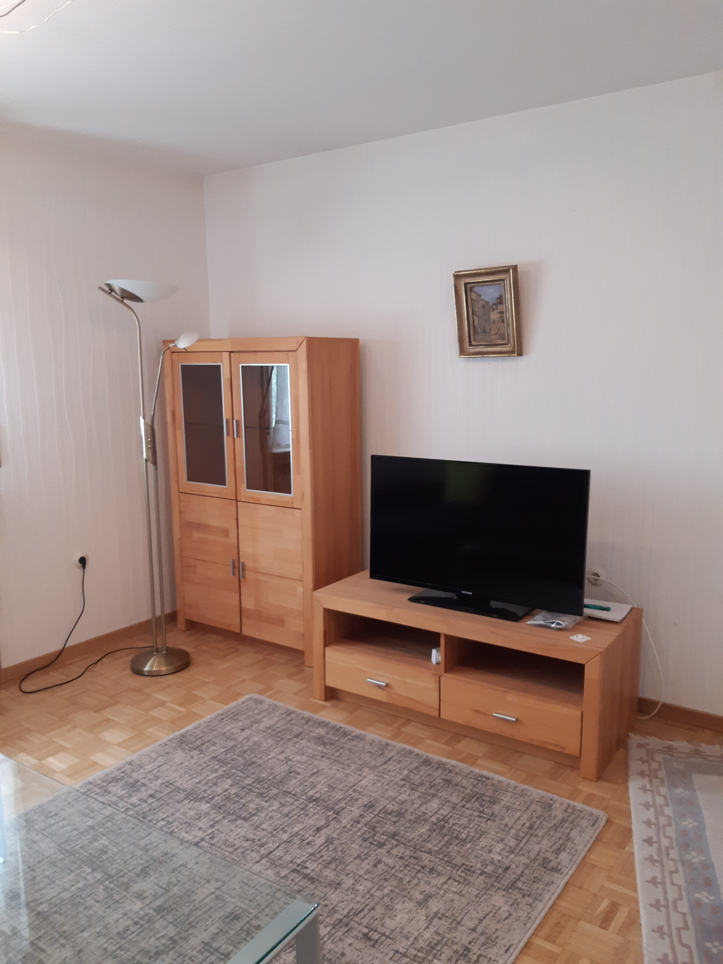 Helle Ferienwohnung im 2. Stock: großes Schlafzimmer mit Doppelbett und Balkon, Wohnzimmer mit Schlafcouch und einem Zustellbett, Esszimmer, Küche mit kleiner Waschmaschine, Spülmaschine, Toaster und Kaffeemaschine,  Bad mit Badewanne, separates WC, WLA; SAT-Fernsehen.